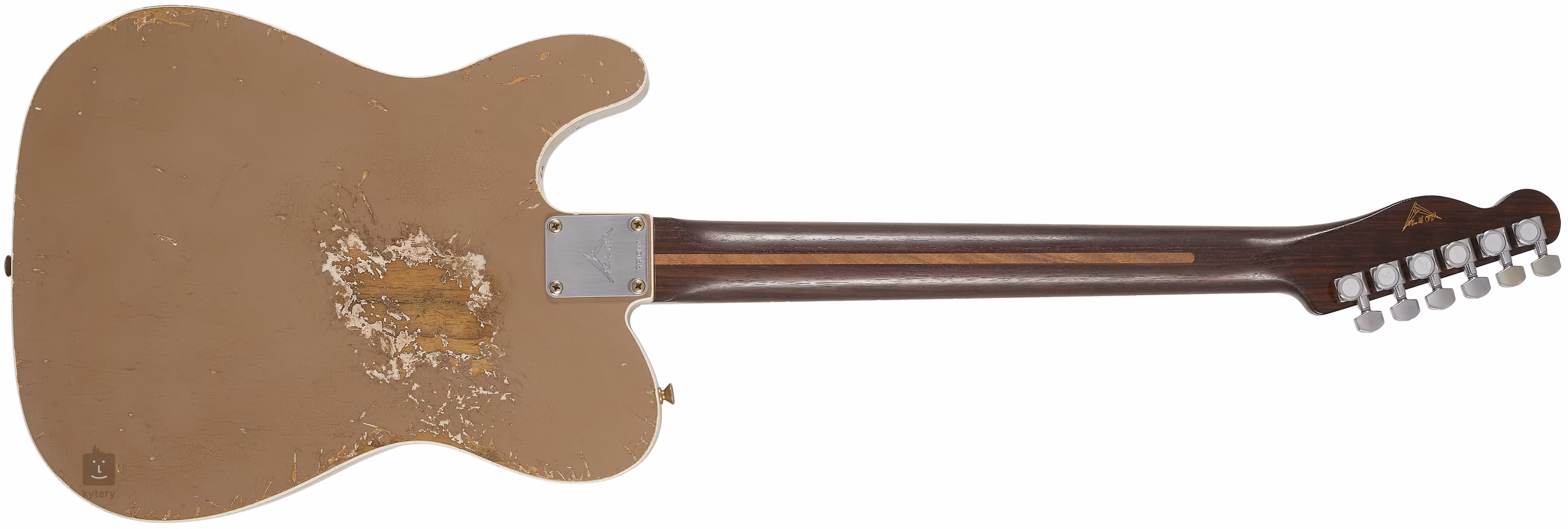 Der zweiteilige Eschenholzkorpus der Gitarre verfügt über ein korrekt gebeiztes Shoreline Gold-Finish und ein Relic-Finish mit authentisch wirkenden Faux-Patina-Elementen in Form von kleinen Schrammen, Kratzern und Narben. Die Gitarre vermittelt den Eindruck eines Instruments, das jahrelang in Clubs und Bars gespielt und aufgearbeitet wurde. Der einteilige Hals aus Palisander hat ein ovales C-Profil im Stil der 60er Jahre. Das Griffbrett ist mit zweiundzwanzig Medium Jumbo (6150) Bünden ausgestattet.