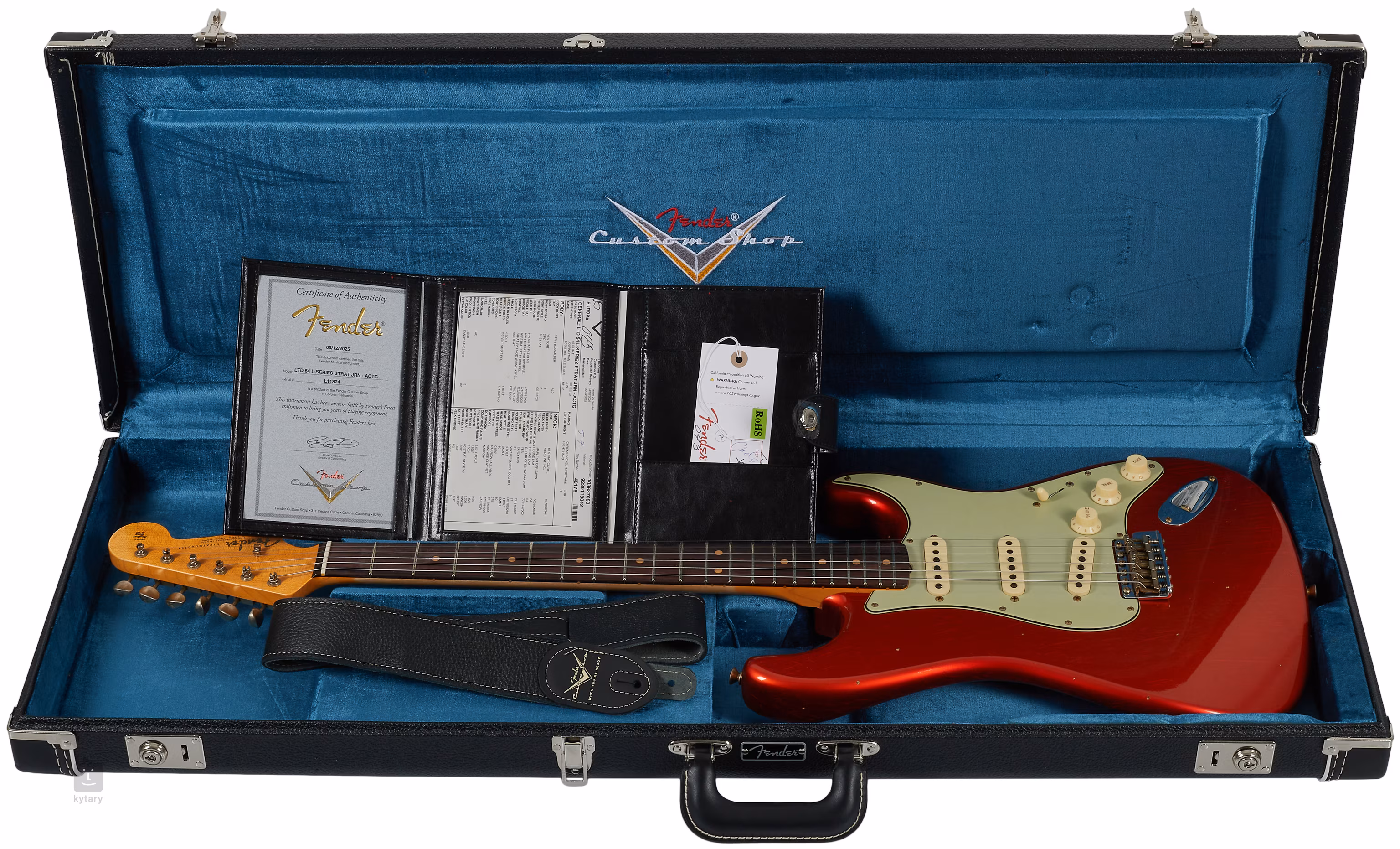 Die Gitarre wird in einem Koffer mit einem Gitarrengurt und einem Echtheitszertifikat geliefert.