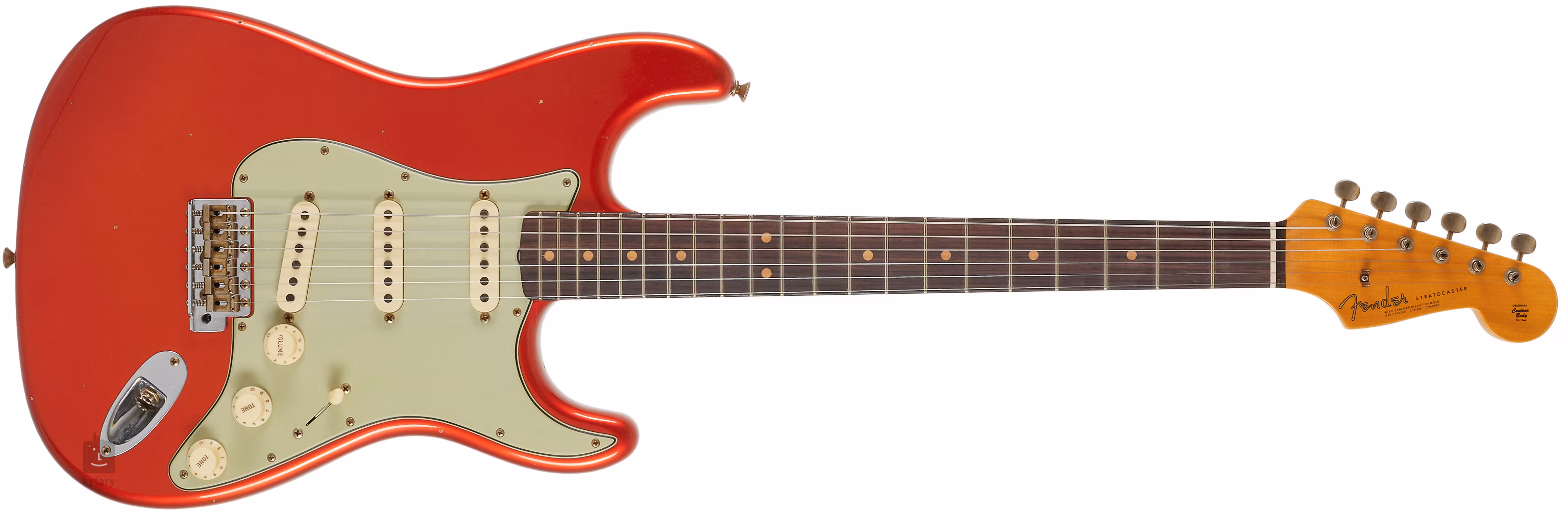 Die Saiten sind in die Vintage-Stimmmechaniken des Unternehmens eingespannt und das Strat-Tremolo ist synchronisiert.