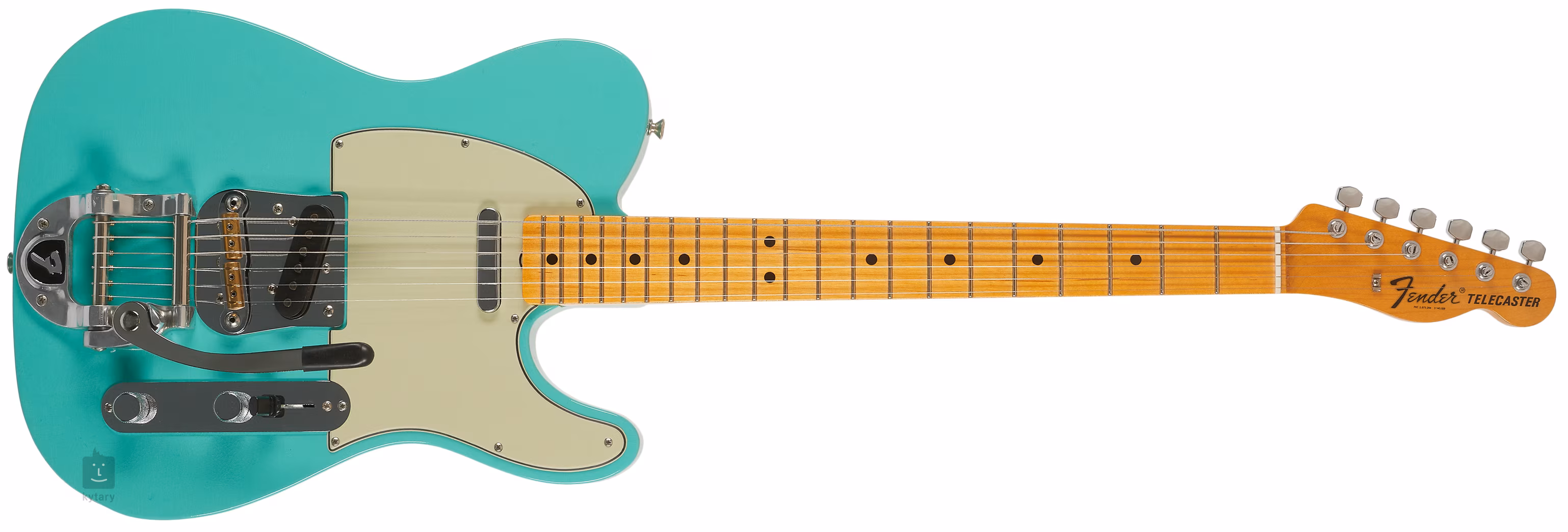 Zwei handgewickelte 67er Tele Single-Coil-Pickups aus dem Custom Shop verleihen der Gitarre den klassischen Telecaster-Twang und das entsprechende Spielgefühl. Mit den Standardreglern lässt sich der Klangcharakter einstellen. Die hochmoderne Greasebucket-Schaltung ermöglicht es, die Höhen wegzunehmen, ohne die Bassfrequenzen zu betonen. Die Saiten sind in Fender/Schaller Vintage F Style Mechaniken und RSD J-Bridge und Bigsby B5 Vibrato Tailpiece montiert. Das Styling wird durch ein 63 Tele Schlagbrett akzentuiert.