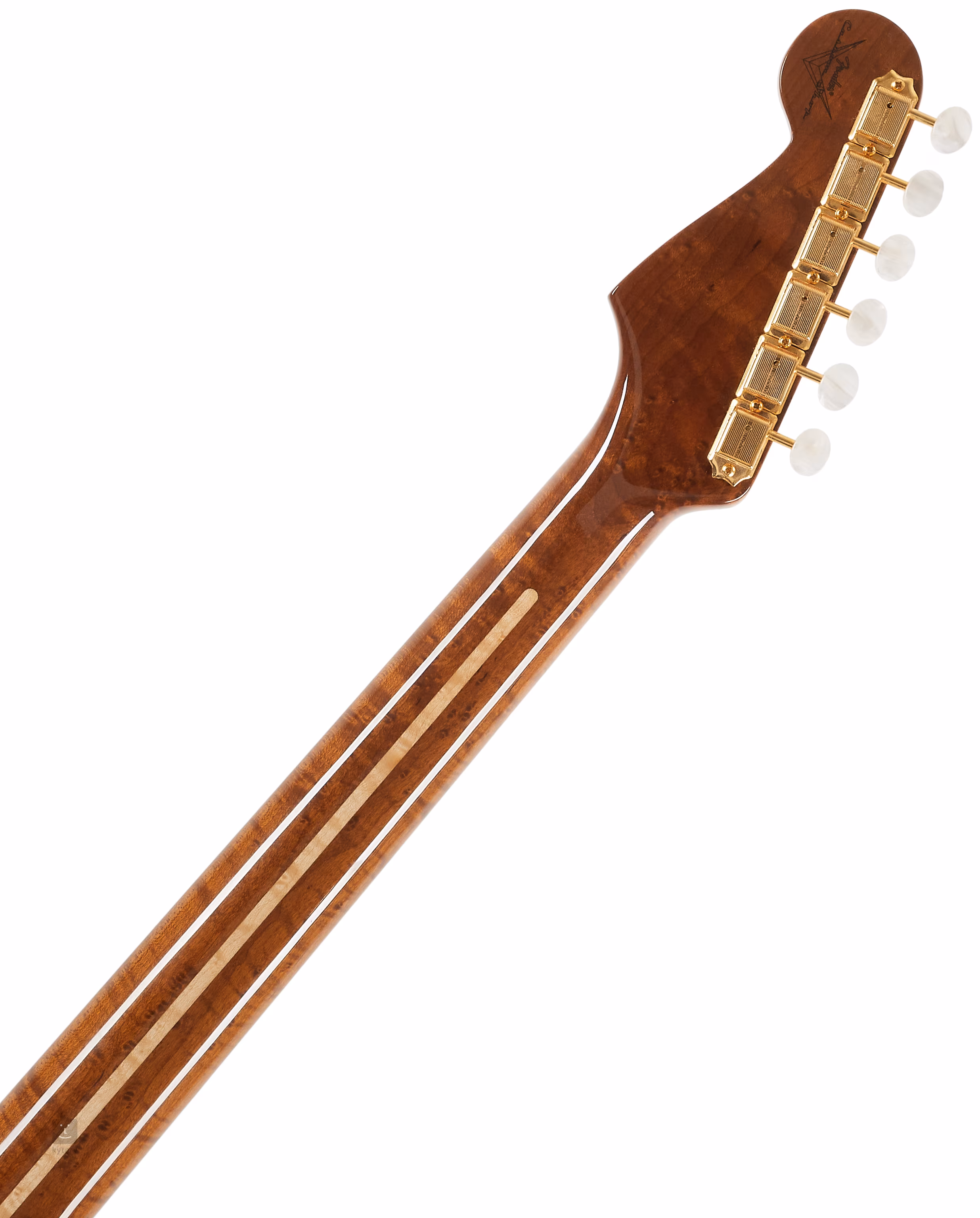 Die Saiten sind in den Vintage-Stimmmechaniken und dem synchronisierten Strat-Tremolo des Unternehmens gelagert. Das stilvolle Finish wird durch goldene Hardware akzentuiert.