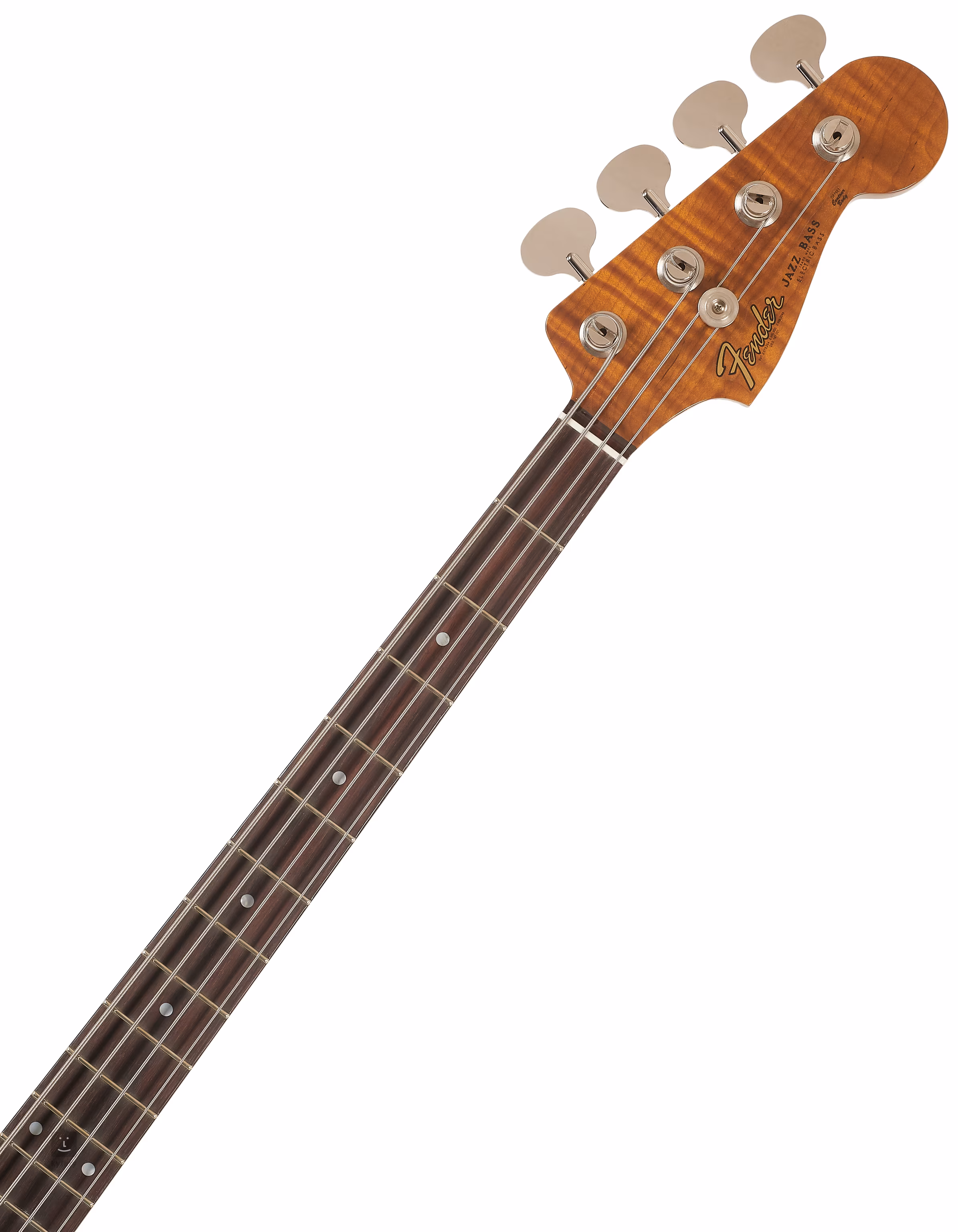 Zwei handgewickelte Vintage Jazz Bass-Tonabnehmer aus den Custom Shop-Werkstätten verleihen dem Instrument einen warmen, ausgewogenen Klang. Sein Charakter lässt sich mit den üblichen Reglern beeinflussen. Die Saiten werden von Stimmmechaniken im Vintage-Stil und einem RSD HiMass-Saitenhalter gehalten. Die stilvolle Verarbeitung wird durch das vierschichtige braune Schalen-Pickguard unterstrichen.