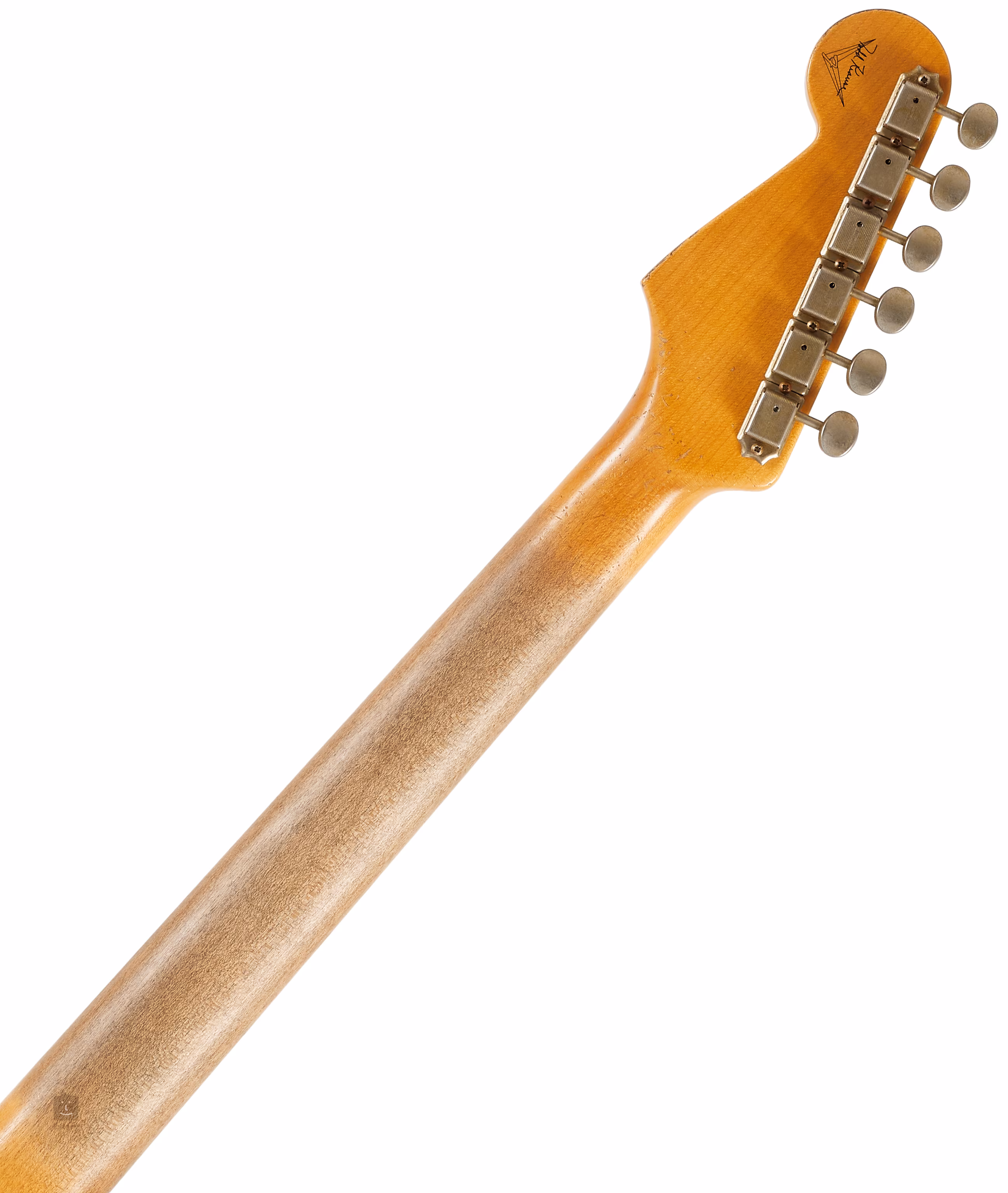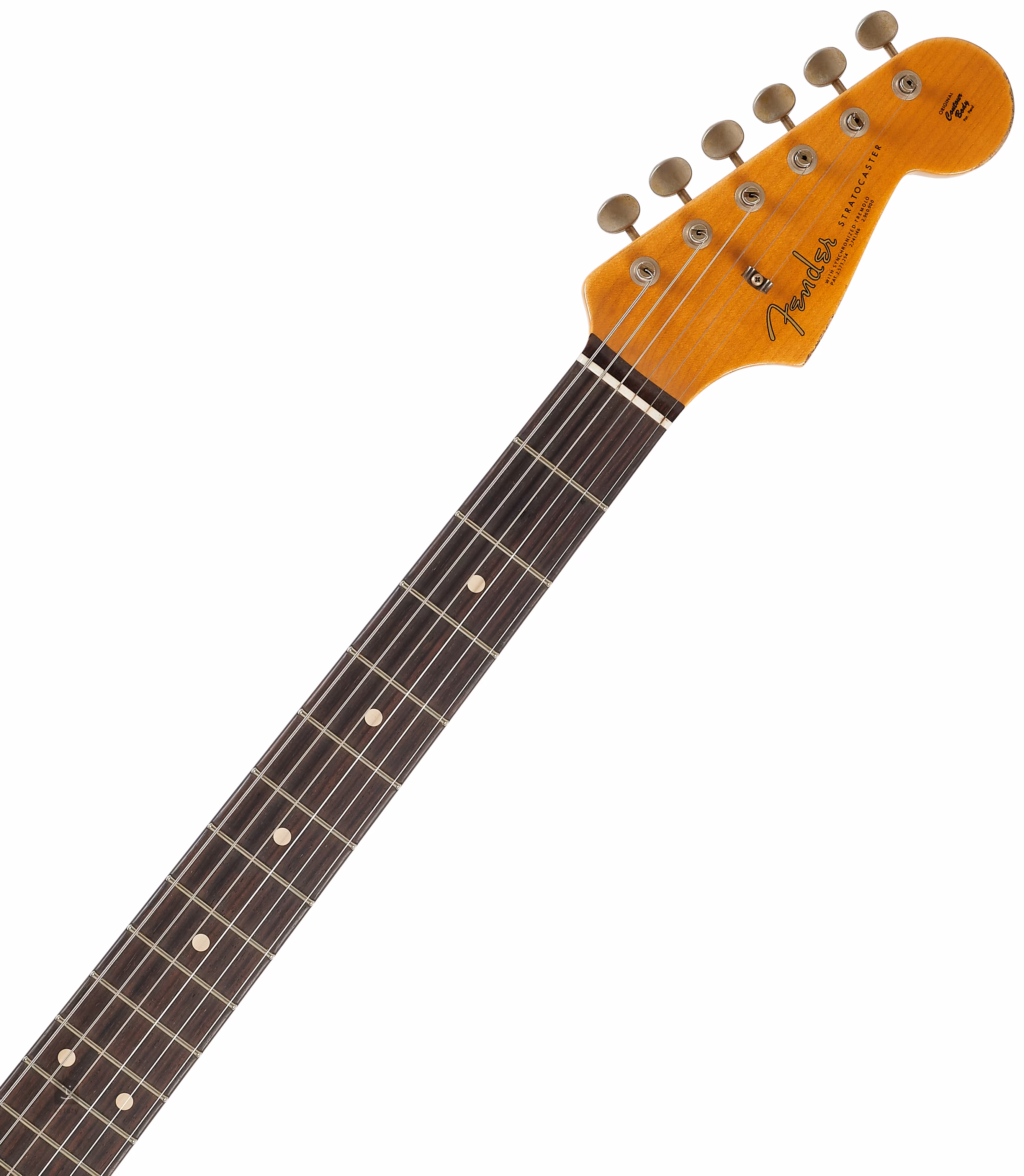 Der Korpus der Gitarre ist aus zwei Teilen Erle gefertigt. Die Journeyman-Relic-Lackierung weist Elemente von Faux-Patina-Lack und Hardware auf, die der jahrzehntelangen normalen Abnutzung entsprechen. So wie es aussieht, sieht die Gitarre aus, als hätte sie schon einiges erlebt, aber nur auf eine gute Art! Auf einem Ahornhals (riftgesägt) mit einem authentischen ovalen "C"-Profil im Stil der 60er Jahre ist ein Palisandergriffbrett mit 21 Narrow Tall (6105) Bünden aufgeklebt.