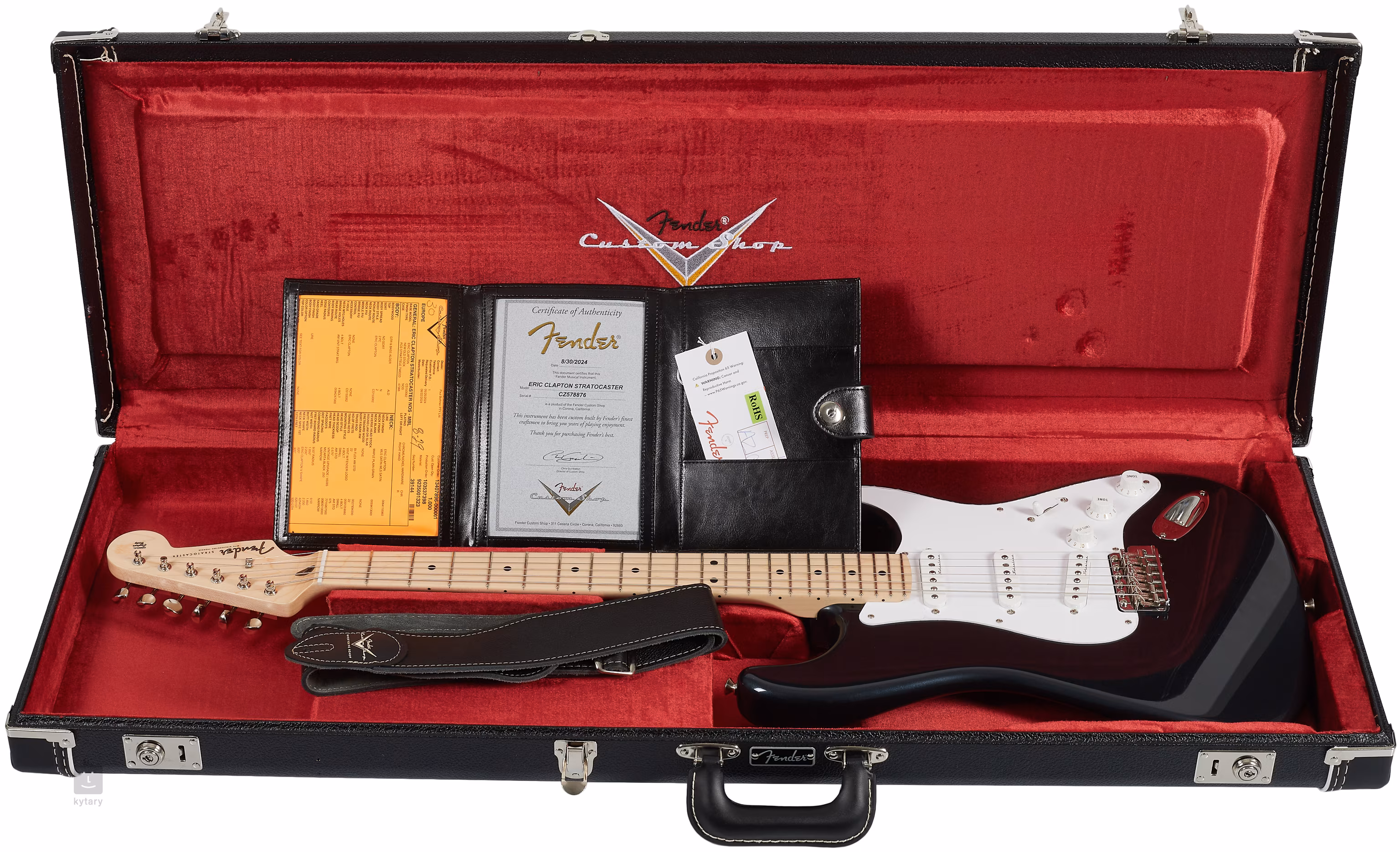 Die Gitarre wird in einem Koffer mit Gurt und Echtheitszertifikat geliefert.