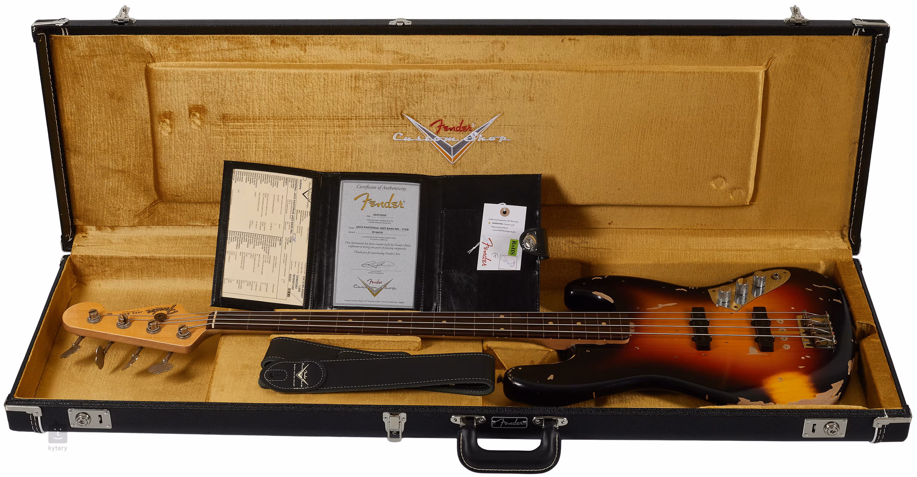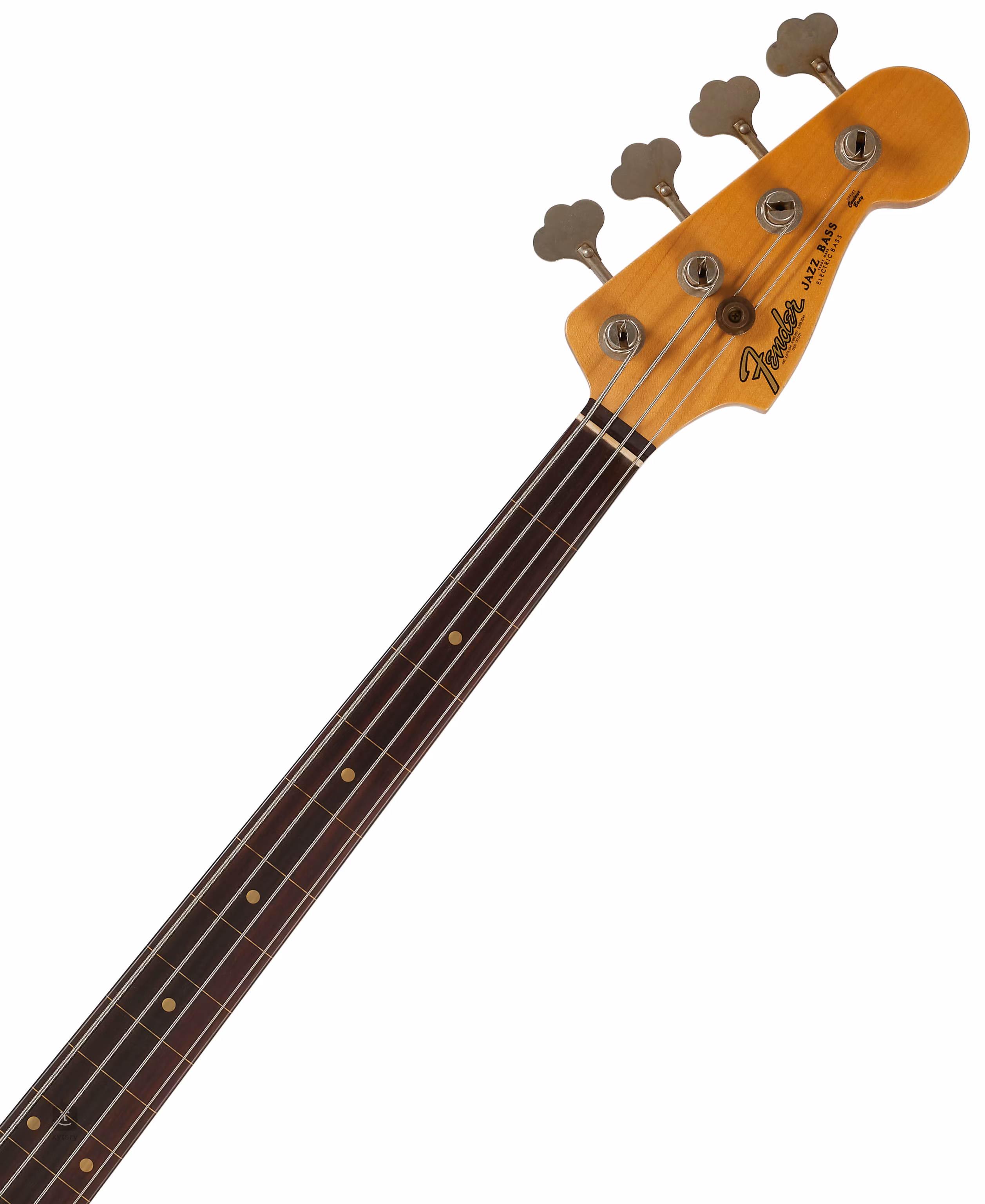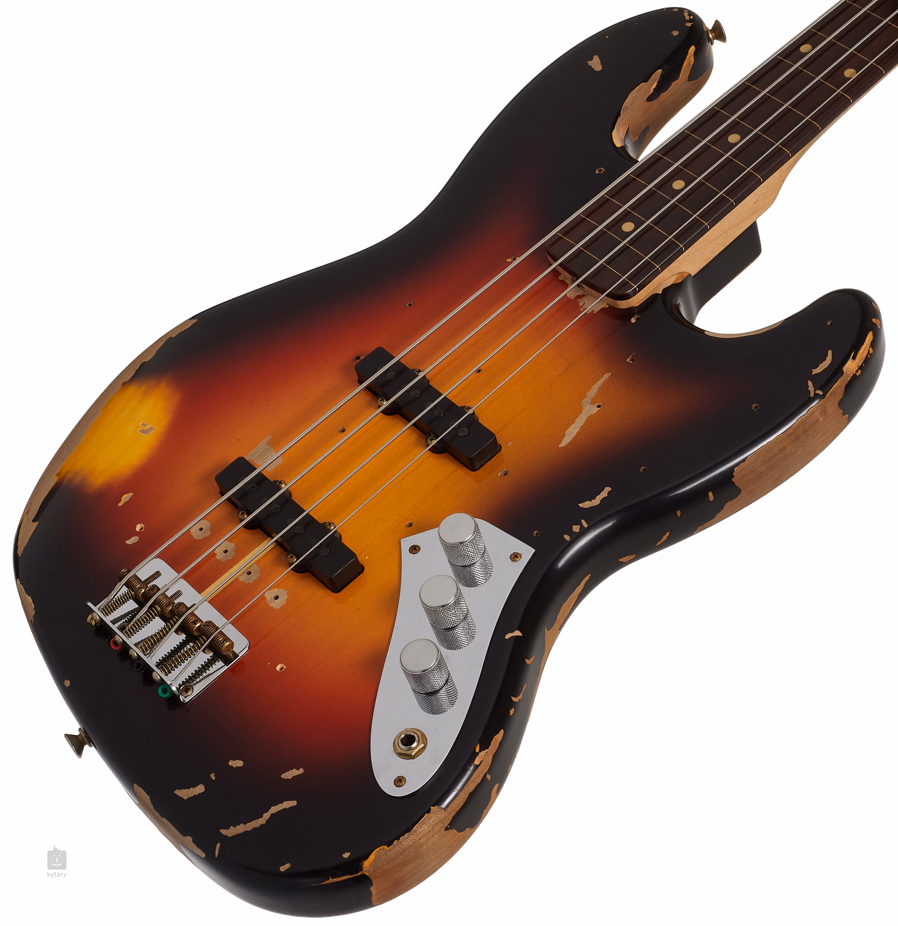 Der Erle-Korpus des Basses ist mit einem Distressed-Sunburst-Finish mit charakteristischen Elementen von Faux-Patina und Nitrocellulose-Lack überzogen. Ein Palisander-Griffbrett ist auf einen Ahornhals mit C-Profil geleimt. Zwei Custom '60s Single-Coil Jazz Bass Pickups aus dem Custom Shop sorgen für den Sound des Instruments. Sein Charakter lässt sich mit den Standard-Reglern einstellen.