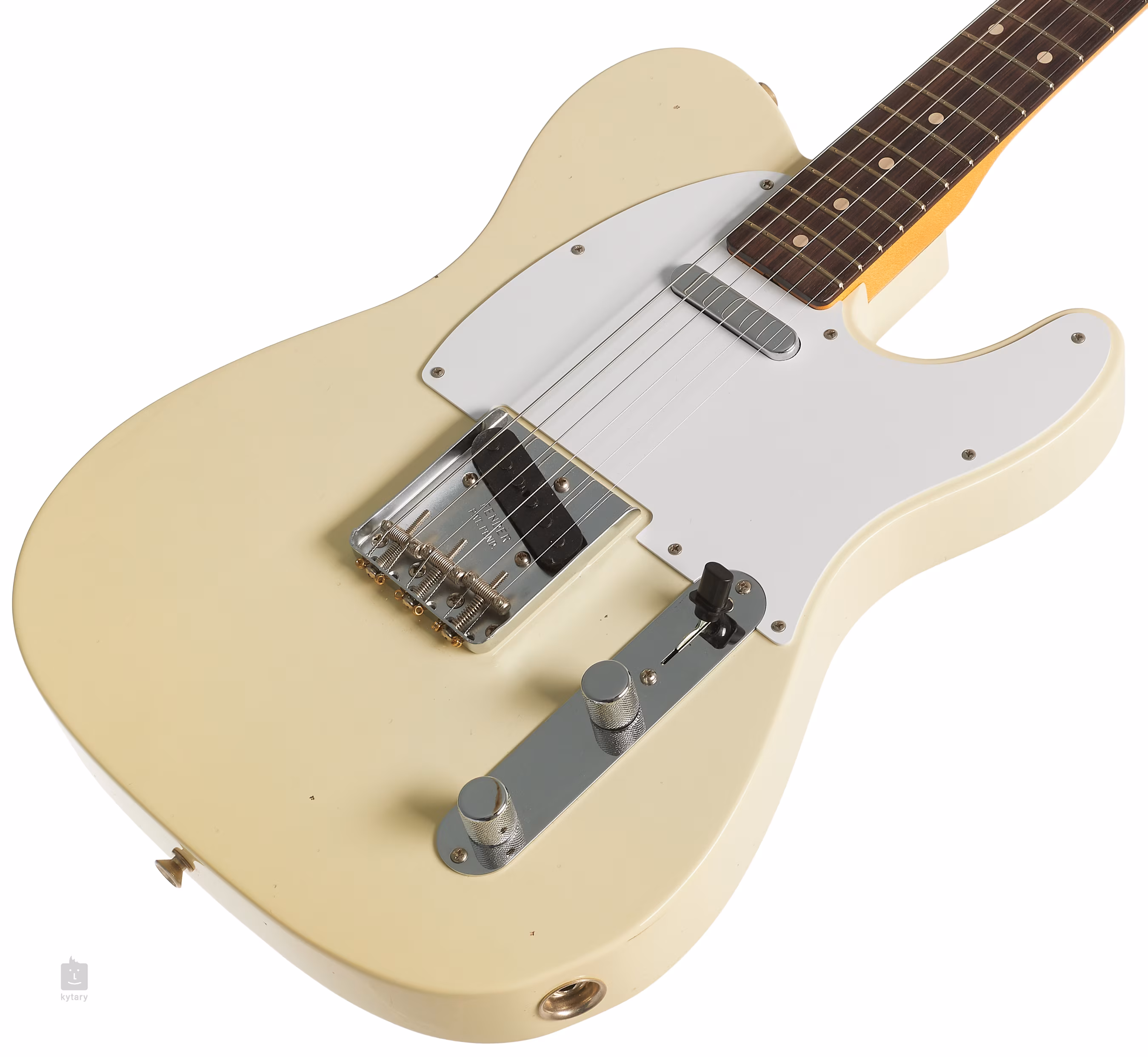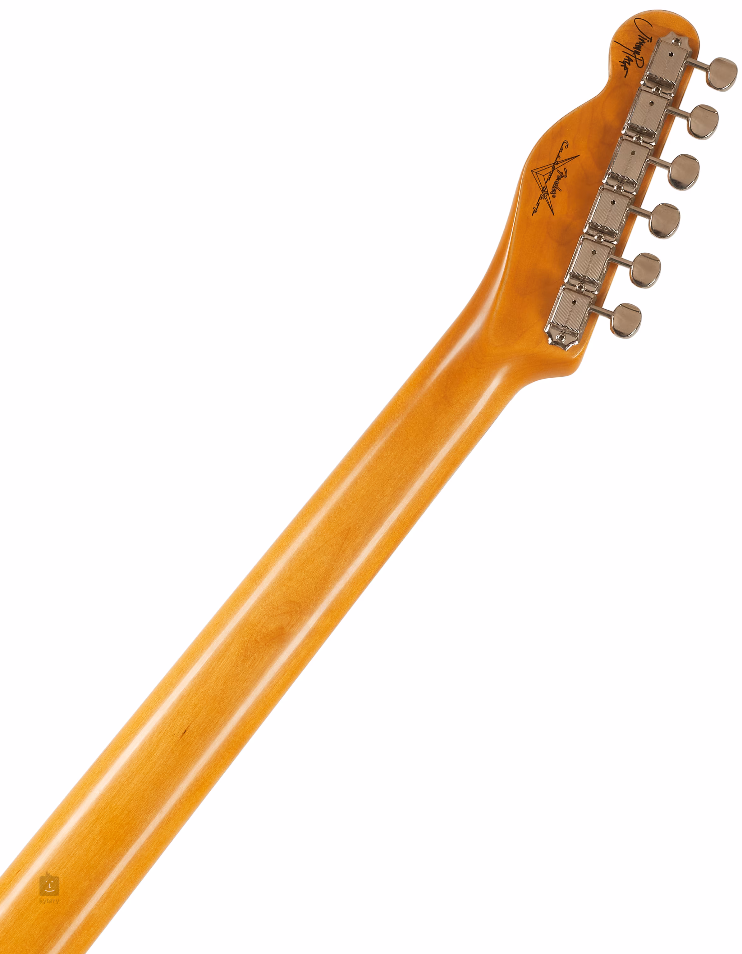 Die Saiten werden über das Griffbrett aus Knochen in Vintage-Stimmmechaniken und einer Telecaster-Kopfplatte mit Stahlsätteln gehalten, die von oben nach unten durch den Korpus geführt wird. Das stilvolle Finish wird durch ein einlagiges weißes Schlagbrett und verchromte Hardware akzentuiert.