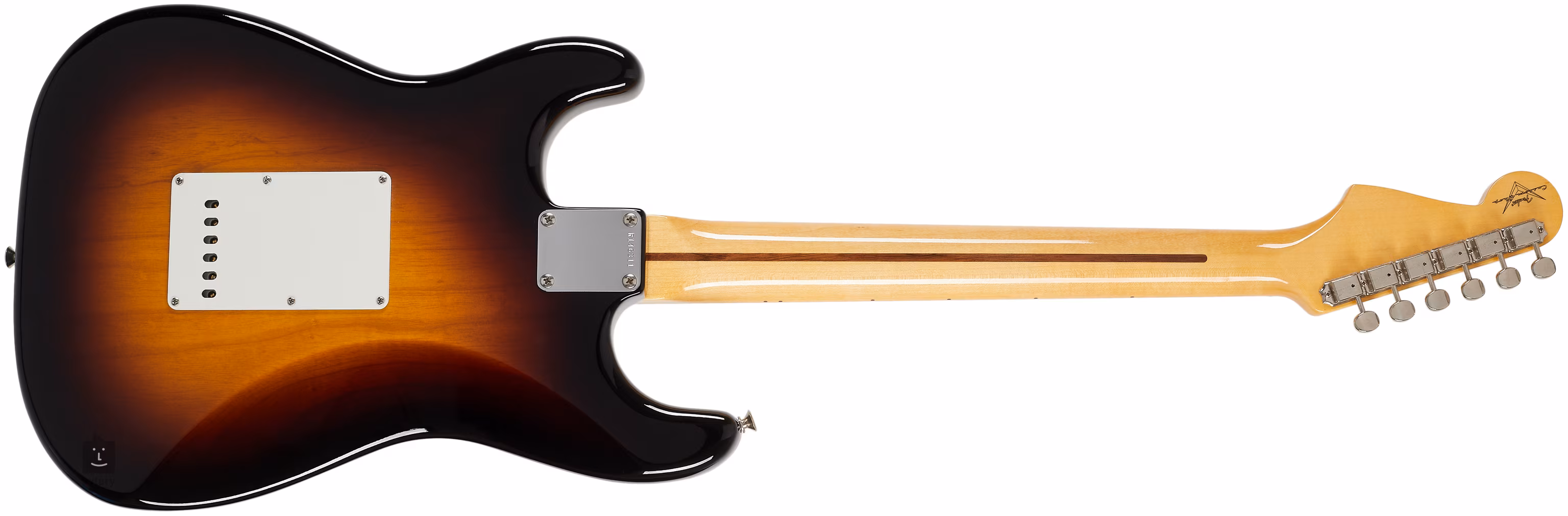 Drei handgewickelte 1955er Strat-Singlecoil-Pickups mit 54er Abdeckungen, Vintage-Pickup-Treiber und -Elektronik, Closet Classic-Hardware, Vintage-Stimmmechaniken, synchronisiertes Tremolo und ein Griffbrett aus Knochen unterstreichen die Authentizität des Instruments.