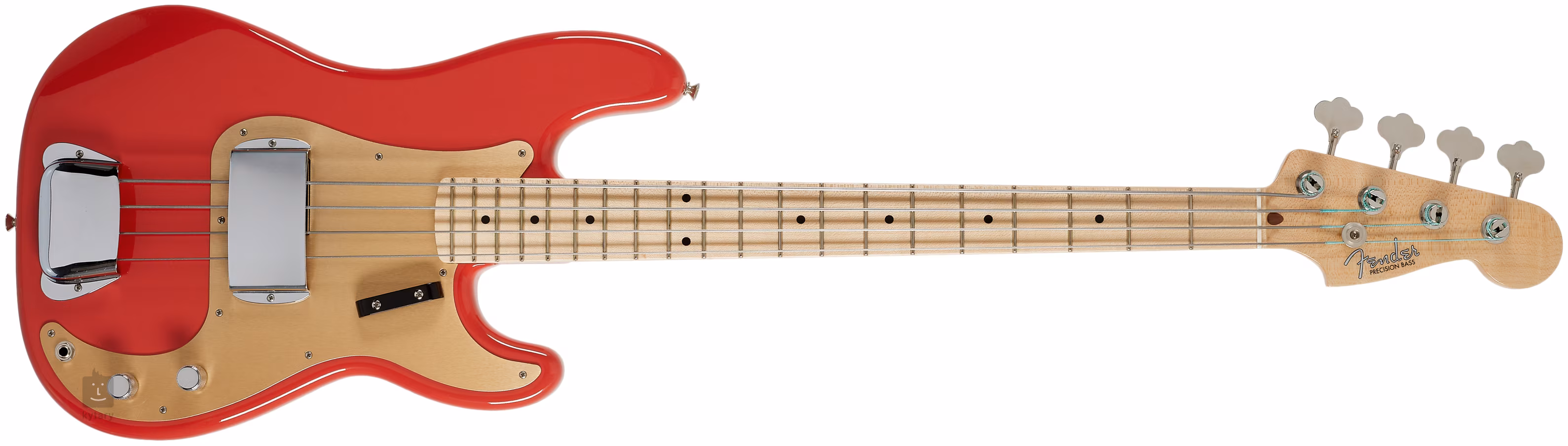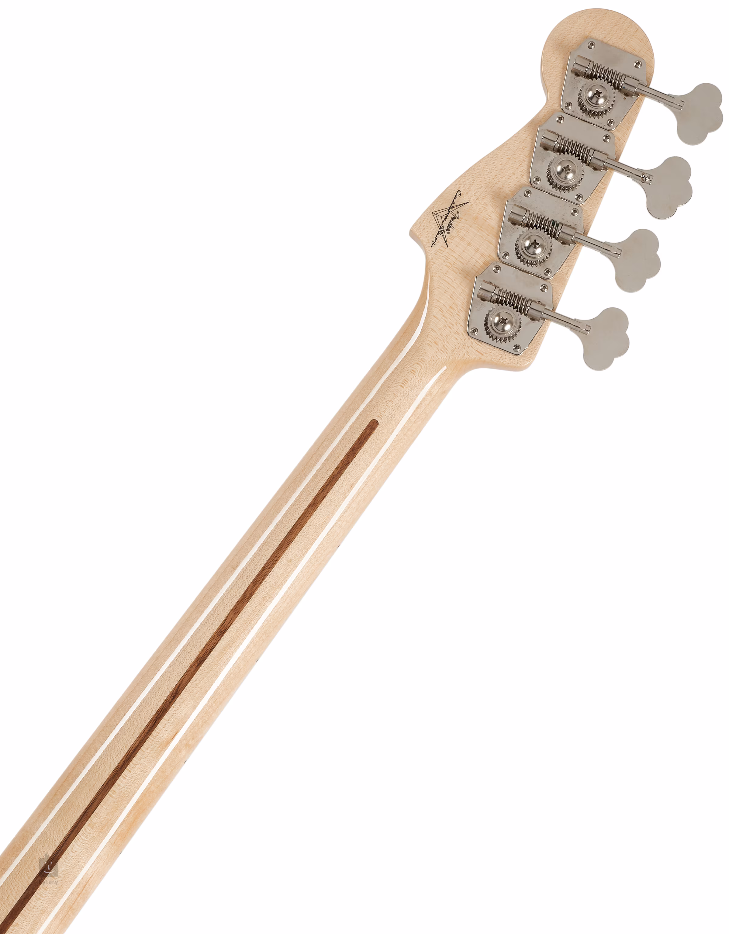Der Korpus des Basses ist aus zwei Teilen Erle gefertigt. Die Aktualität des Instruments wird durch die NOS-Lackierung (New Old Stock) unterstrichen, eine brandneue, authentische Lackierung der Originale aus den 50er und 60er Jahren ohne die Elemente künstlicher Patina und Alterungserscheinungen in Form von verblasstem Lack. Und dann ist es unmöglich, in der Zeit zurückzureisen! Der einteilige Ahornhals (quartalsweise gesägt) weist ein '57er Soft-V-Profil auf, und das Griffbrett ist mit zwanzig Medium-Vintage-Bünden (47095) bestückt.