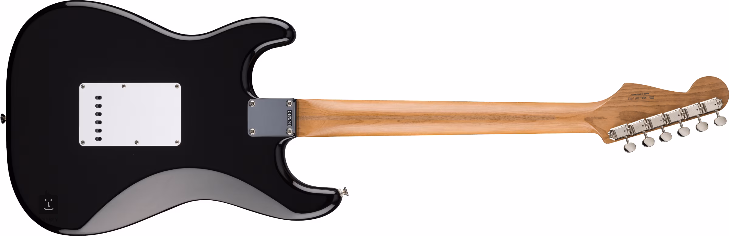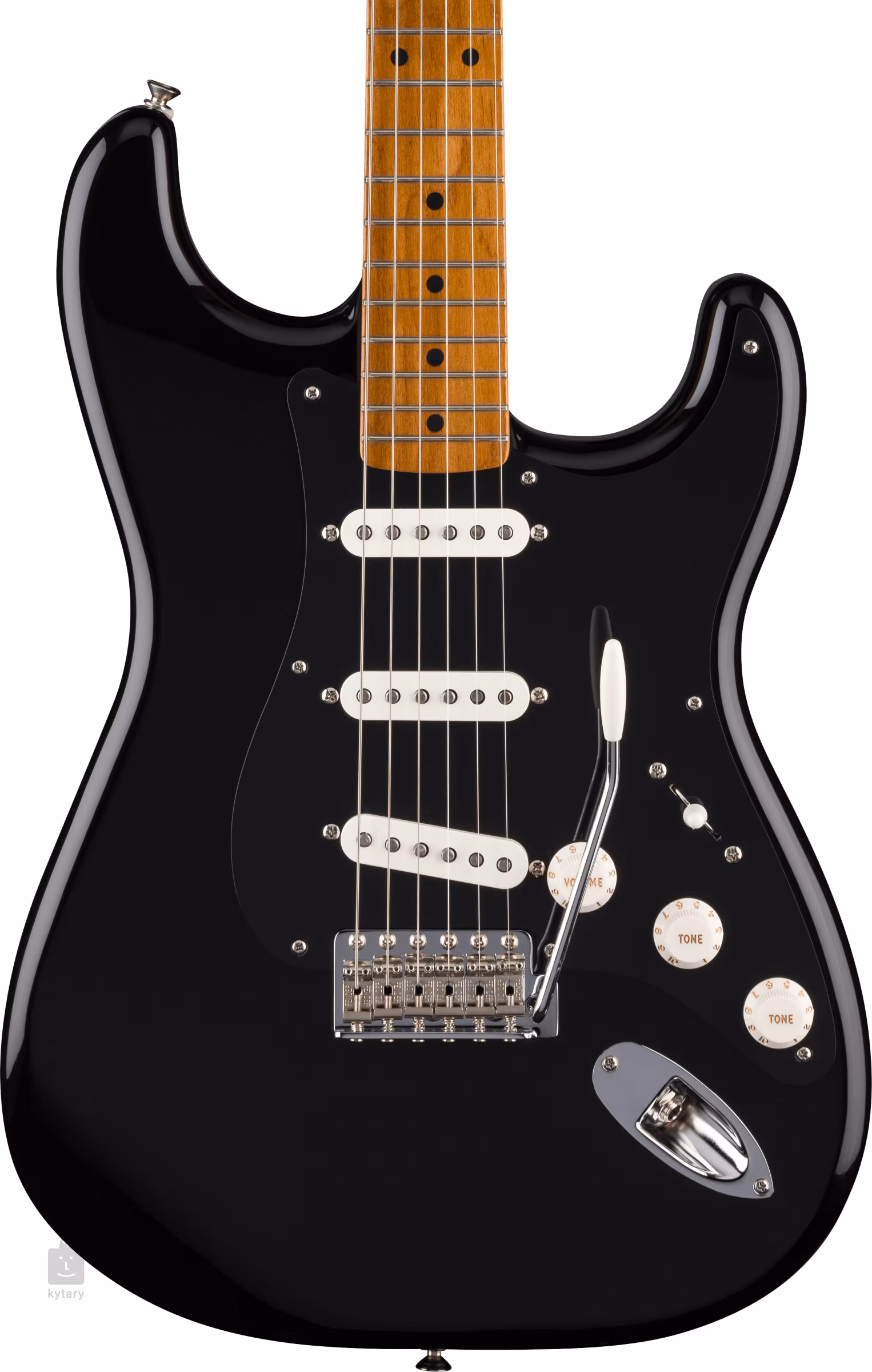 Ein Trio von Custom Shop Fat '60s Single-Coil-Tonabnehmern verleiht der Gitarre einen warmen, lebendigen Ton mit deutlich erkennbarer Fender-DNA. Der Charakter des Tons lässt sich mit den Standardreglern einstellen. Die Saiten sind über einem Griffbrett aus synthetischem Knochen in den Vintage-Stimmmechaniken und dem synchronisierten Tremolo des Unternehmens montiert. Das Styling wird durch ein schwarzes, einlagiges Schlagbrett und das Fender-Logo auf der Kopfplatte akzentuiert.