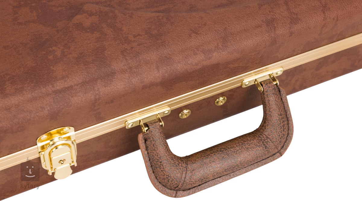 Das Eyeglass Jazzmaster/Jaguar Case von Fender ist eine moderne Interpretation des ikonischen Eyeglass Case, inspiriert von den Jazzmaster- und Jaguar-Koffern aus der Mitte der 1960er Jahre. Das Etui besteht aus einer ABS-Schale in Militärqualität, die nach ATA-Standards geformt wurde, mit einem Aufdruck aus Rindslederimitat und einer strukturierten Lederoberfläche. Der innere EPS-Schutzschaum ist genau auf die Gitarren zugeschnitten und verfügt über eine erweiterte Halsstütze. Die weiche Innenausstattung aus gecrashtem Acryl in Brandorange verleiht dem Koffer ein luxuriöses Aussehen, während das Vintage-inspirierte Innenetikett an sein historisches Erbe erinnert. Der Koffer verfügt außerdem über zwei Zubehörfächer mit Deckeln, einen mit braunem Vinyl umwickelten Stahlkerngriff und goldene Stahlverschlüsse, von denen einer mit einem Schlüssel abschließbar ist. Dieser Koffer ist ideal für die Modelle Jazzmaster und Jaguar.