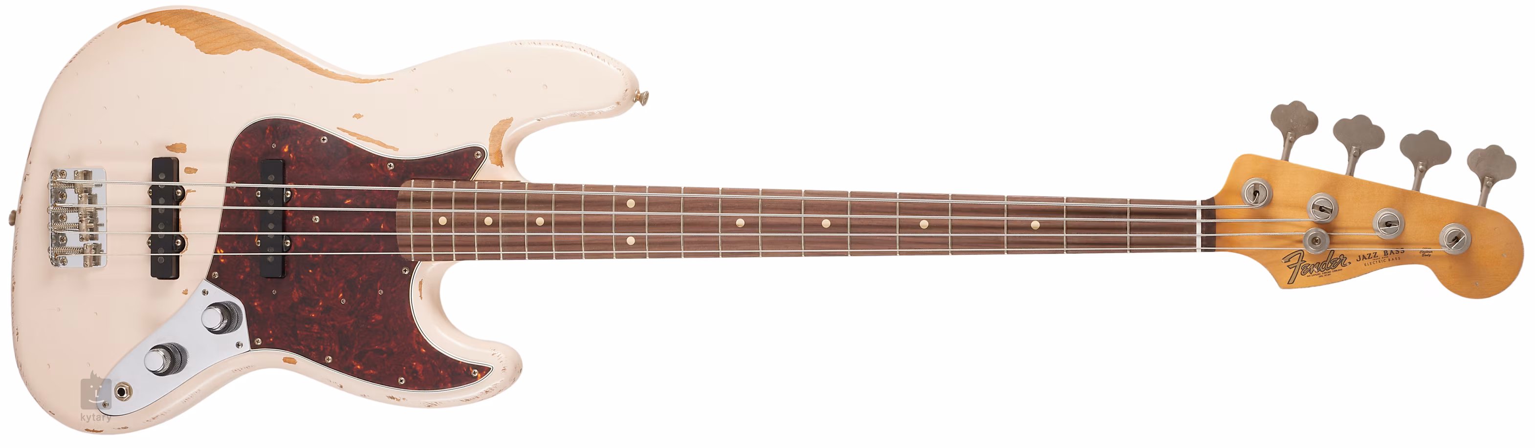 Der Flea Jazz Bass ist eine exakte Nachbildung des Originalinstruments aus dem Jahr 1961, das Flea unter anderem für die Aufnahmen von Stadium Arcadium verwendete. Sein Korpus ist aus ausgesuchter Erle gefertigt und mit einem Ahornhals verschraubt. Er ist mit zwanzig Bünden ausgestattet und sein U-Profil in Kombination mit einem 7,25"-Funk ermöglicht ein sehr schnelles und komfortables Spiel. Die gesamte Gitarre ist mit Nitrocellulose-Lack und einem Road Worn-Finish versehen - ein Finish, das an Instrumente erinnert, die mindestens einige Jahrzehnte härtester Behandlung hinter sich haben.