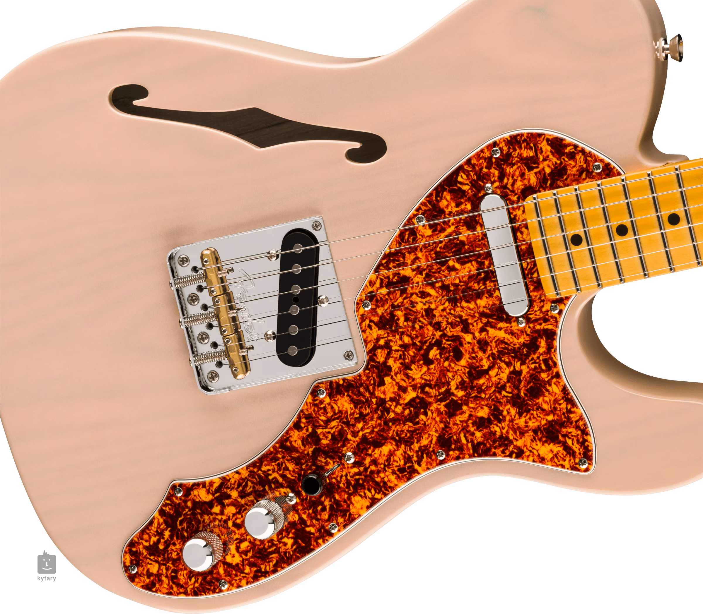 Die FSR American Professional II Telecaster MN TL TRNS SHP ist ein Thinline-Modell aus der Sonderedition der Marke (Fender Special Run) mit einem schmaleren, gekammerten Eschenkorpus und F-Cutaway. Der Korpus der Gitarre ist mit einer glänzenden Polyurethan-Lackierung überzogen und in Transparent Shell Pink lackiert. Der Ahornhals mit einem "Deep C"-Profil (eine Kreuzung aus Modern C und U) liegt perfekt in der Hand - egal, ob man schnelle Soli oder Akkorde spielt. Das Ahorn-Griffbrett ist durch zweiundzwanzig Narrow Tall-Bünde und schwarze Positionspunkte unterteilt. Abgerundete Griffbrettkanten und ein neu geformter Halsfuß sorgen für eine leichte und komfortable Bespielbarkeit über die gesamte Griffbrettfläche.