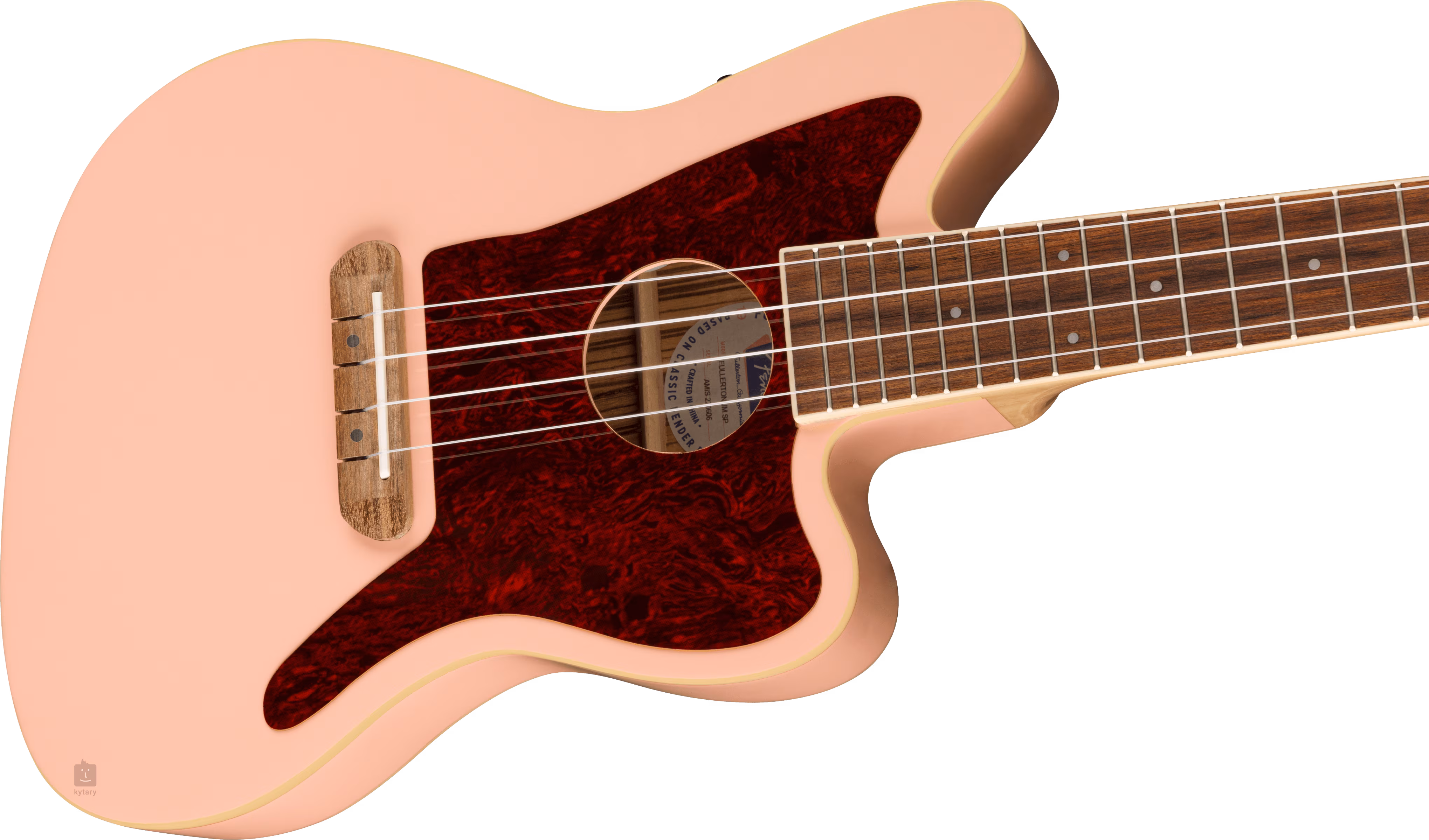 Die elektroakustischen Ukulelen von Fender Fullerton verbinden die kompakte Form einer Ukulele mit der Ästhetik der Fender-E-Gitarren. Konkret handelt es sich bei der Fullerton Jazzmaster Uke um eine Konzert-Ukulele im Jazzmaster-Design, von dem sie ihre spezifische Offset-Korpusform, das Schlagbrett und die Kopfplattenform mit 4-in-Line-Stimmmechanik übernommen hat.
