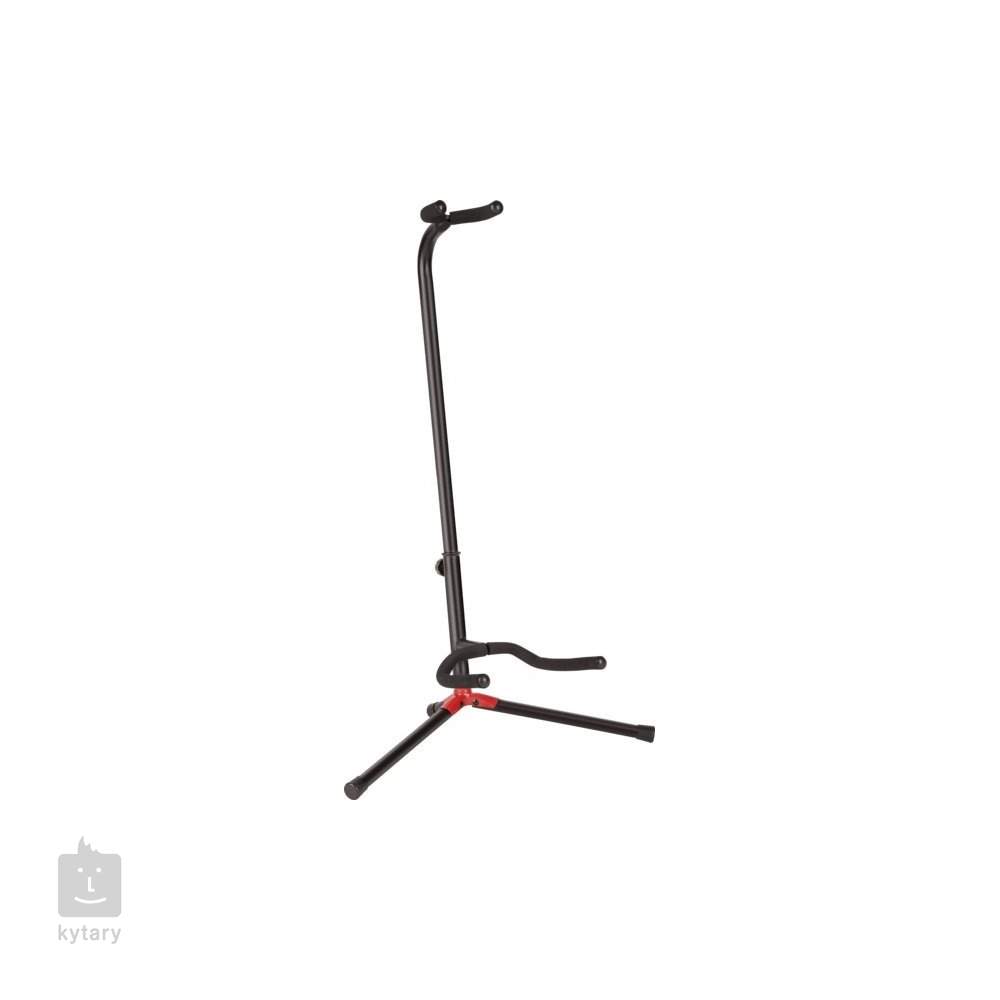 Dieser höhenverstellbare Gitarrenständer ist für Akustikgitarren, E-Gitarren und Bässe geeignet. Die unteren Halterungen haben eine Oberfläche, um auch Gitarren mit Nitrocellulose-Lack sicher auf ihnen zu halten.