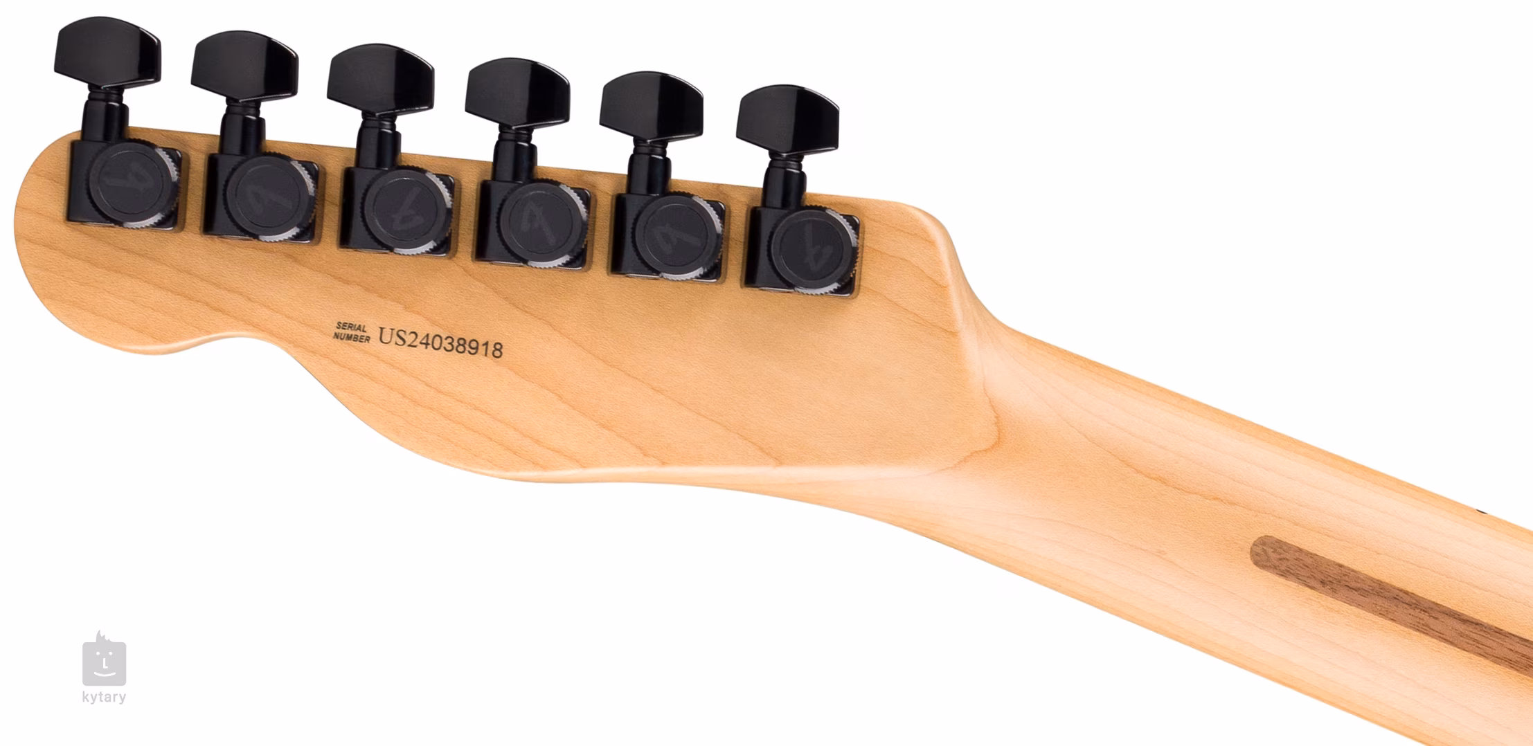 Die Saiten sind in den firmeneigenen Locking-Mechaniken und durch eine feste Brücke im Korpus verankert. Das stilvolle Finish wird durch ein schwarzes Schlagbrett und schwarze Hardware akzentuiert.