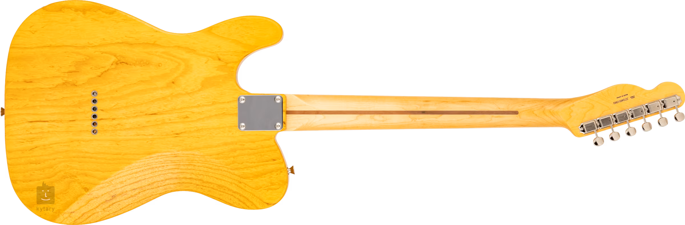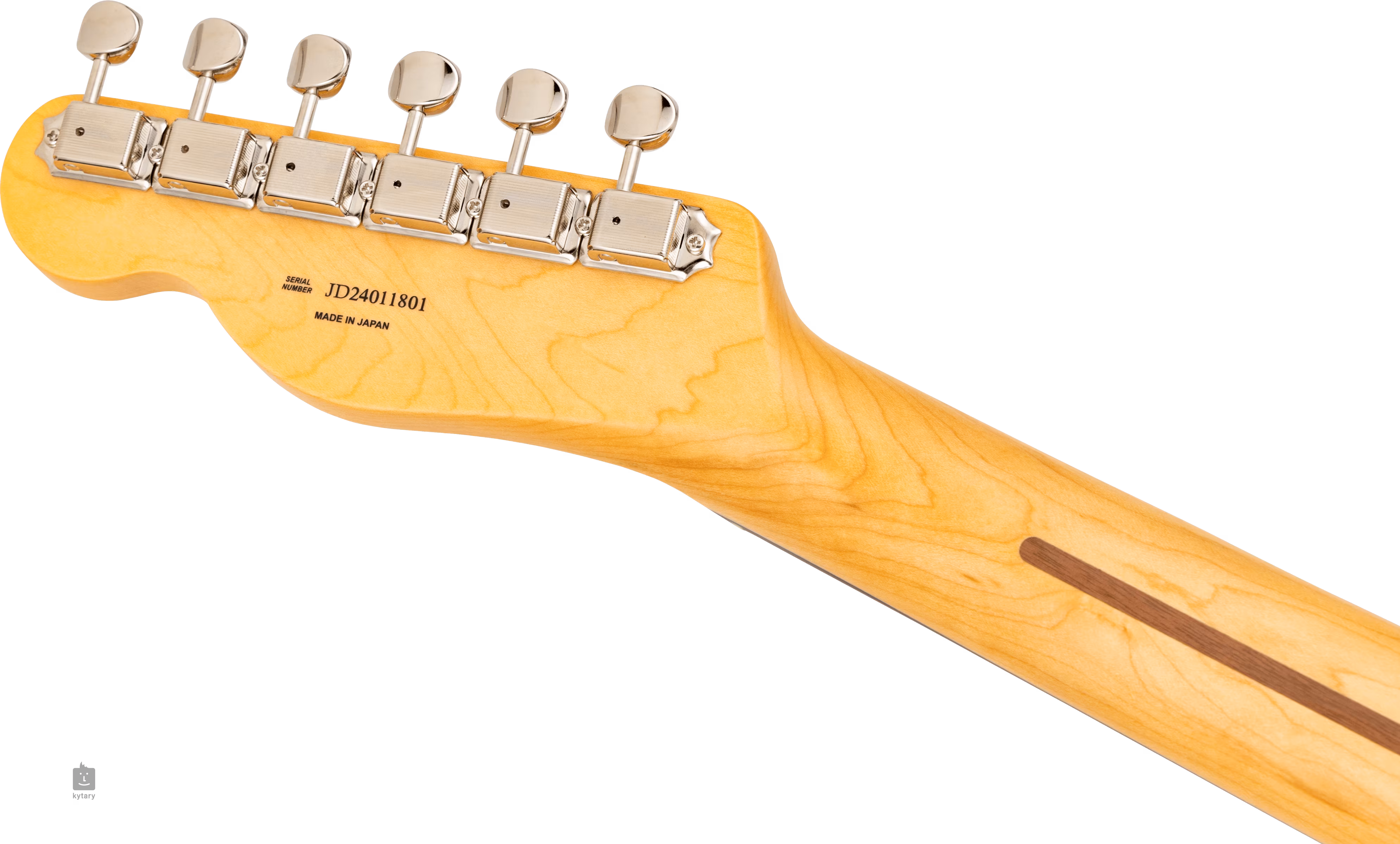 Ein Paar Singlecoil-Telecaster-Pickups im Vintage-Stil verleihen der Gitarre einen Sound und ein Spielgefühl, das eindeutig Fender-DNA erkennen lässt. Die Konturen des Sounds lassen sich mit den Standardreglern einstellen. Die Saiten werden über ein Griffbrett aus Knochen und eine Tele-Brücke mit drei Messing-Sätteln durch den Korpus in den Locking-Tunern des Unternehmens im Vintage-Stil gehalten. Das Styling wird durch ein vierlagiges Schlagbrett aus Schildpatt-Imitat und das Fender Telecaster-Logo auf der Kopfplatte akzentuiert.