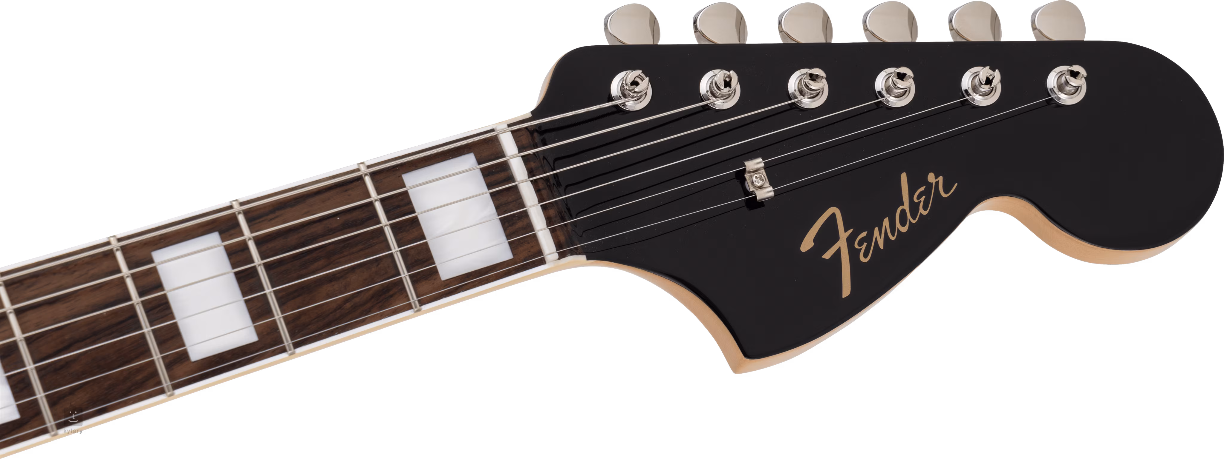 Die Saiten werden über einen Knochen-Nullbund und ein schwebendes Tremolo über einen Sattel mit sechs verstellbaren Sätteln in die Vintage-Stimmmechaniken des Unternehmens eingespannt. Die stilvolle Verarbeitung wird durch ein helles dreilagiges Schlagbrett akzentuiert.