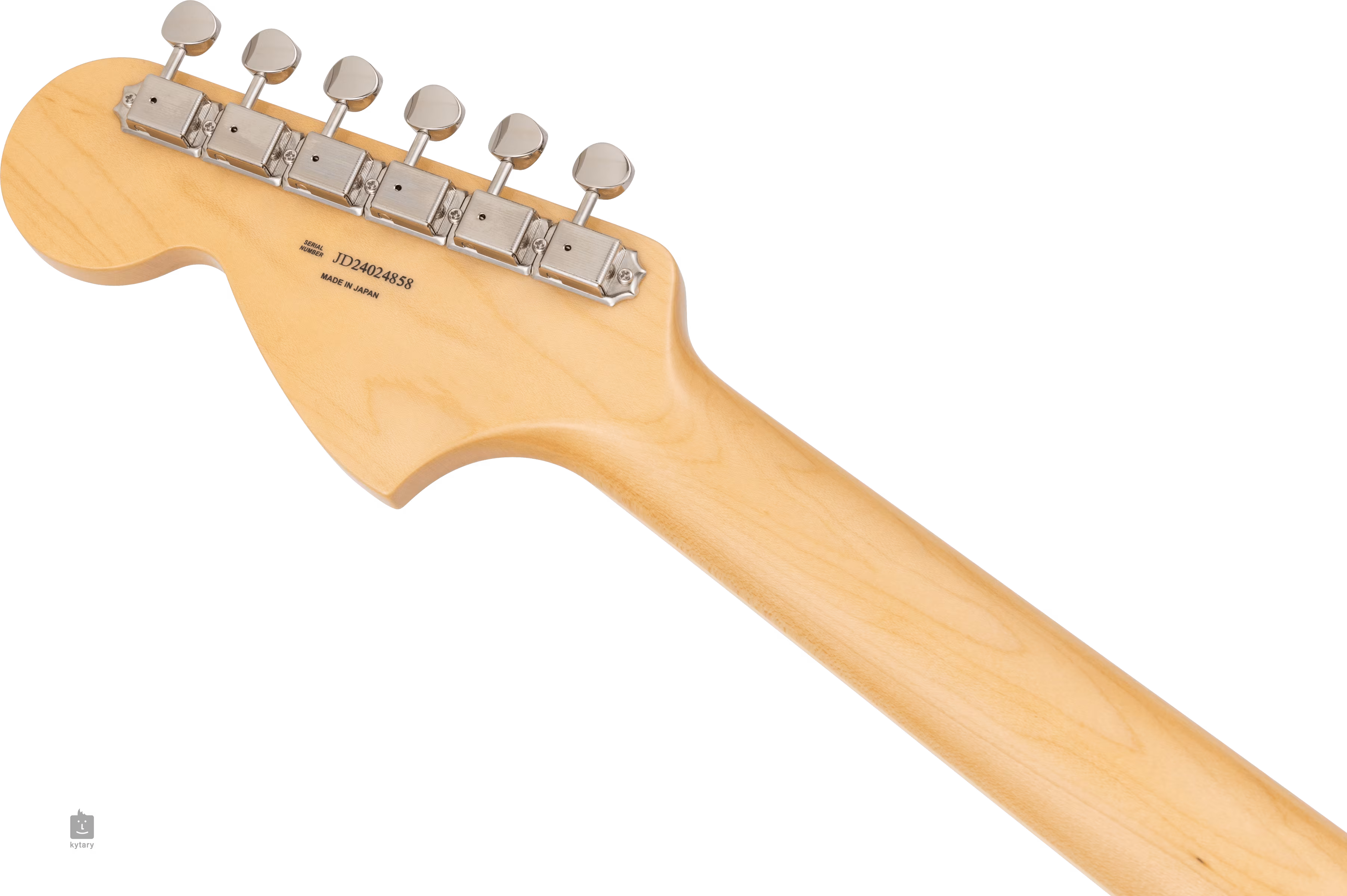 Das Wort Jazzmaster im Namen deutet auf die ursprüngliche Intention hin, aber dieses Instrument mit seiner typischen Offset-Korpusform hatte nicht viel mit Jazz zu tun - es erlangte Popularität unter Musikern der alternativen Musikszene (von Surf-Rock bis Indie-Rock). Der limonenfarbene Korpus des Instruments ist mit einem glänzenden Polyesterlack und schwarzem Finish verziert. Der Ahornhals mit U-Profil ist auf ein Palisandergriffbrett mit einundzwanzig Bünden in Vintage-Größe geklebt. Die Orientierung auf dem Griffbrett wird durch Positionsblöcke aus Perlmuttimitat erleichtert.