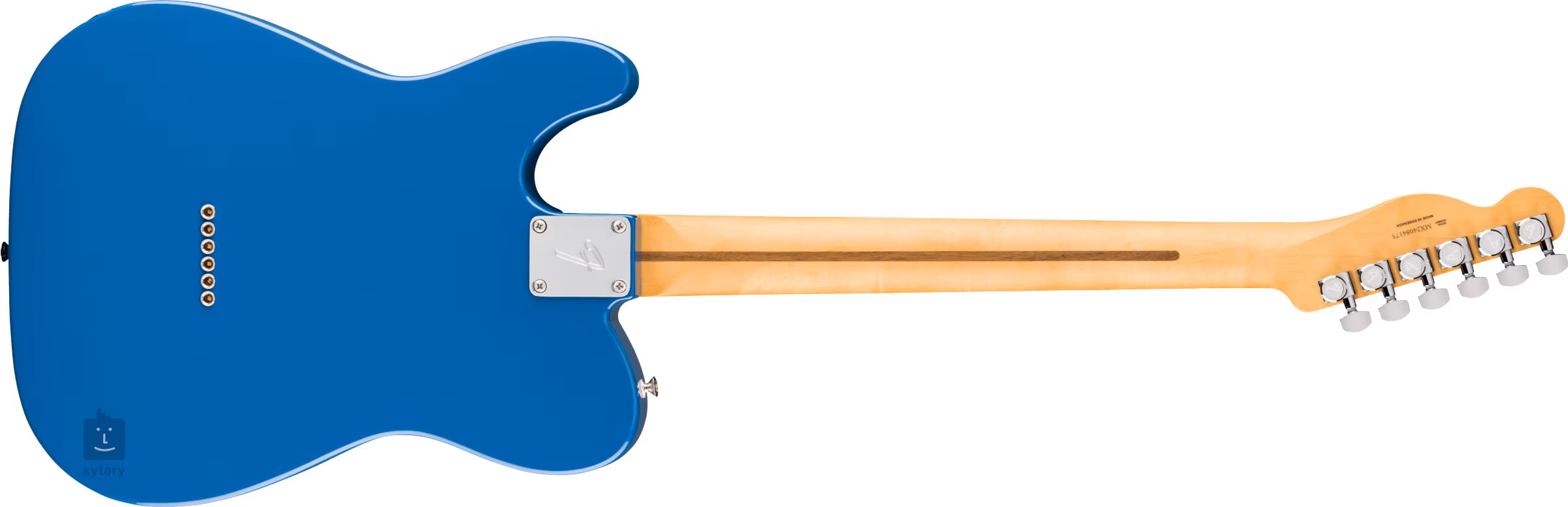 Ein weiteres neues Merkmal der Serie ist die Verwendung von Fender Sealed Locking Mechaniken und einem TusQ-Griffbrett (die Standard-Serie hat ein Faux Bone-Griffbrett). Die Saiten sind standardmäßig in einer durchgehenden Tele-Kopfplatte mit sechs Messingblocksätteln verankert. Der stilvolle Look der Gitarre wird durch ein vierlagiges Schlagbrett aus Perlmuttimitat und eine Electric Blue-Lackierung unterstrichen.