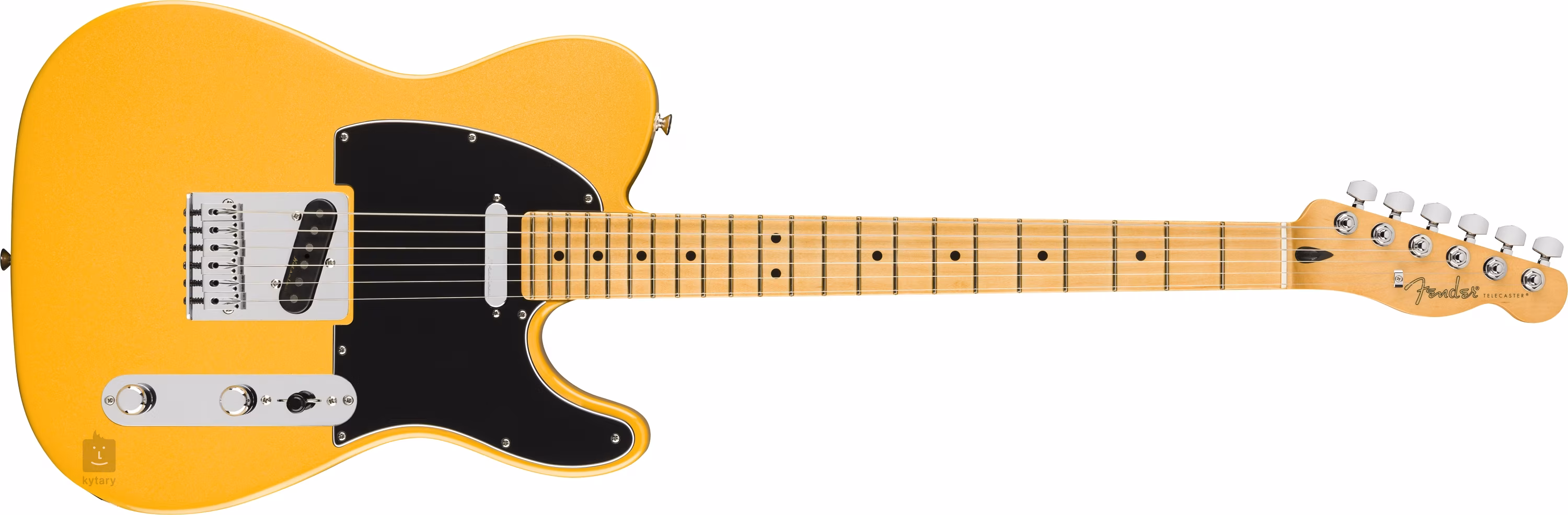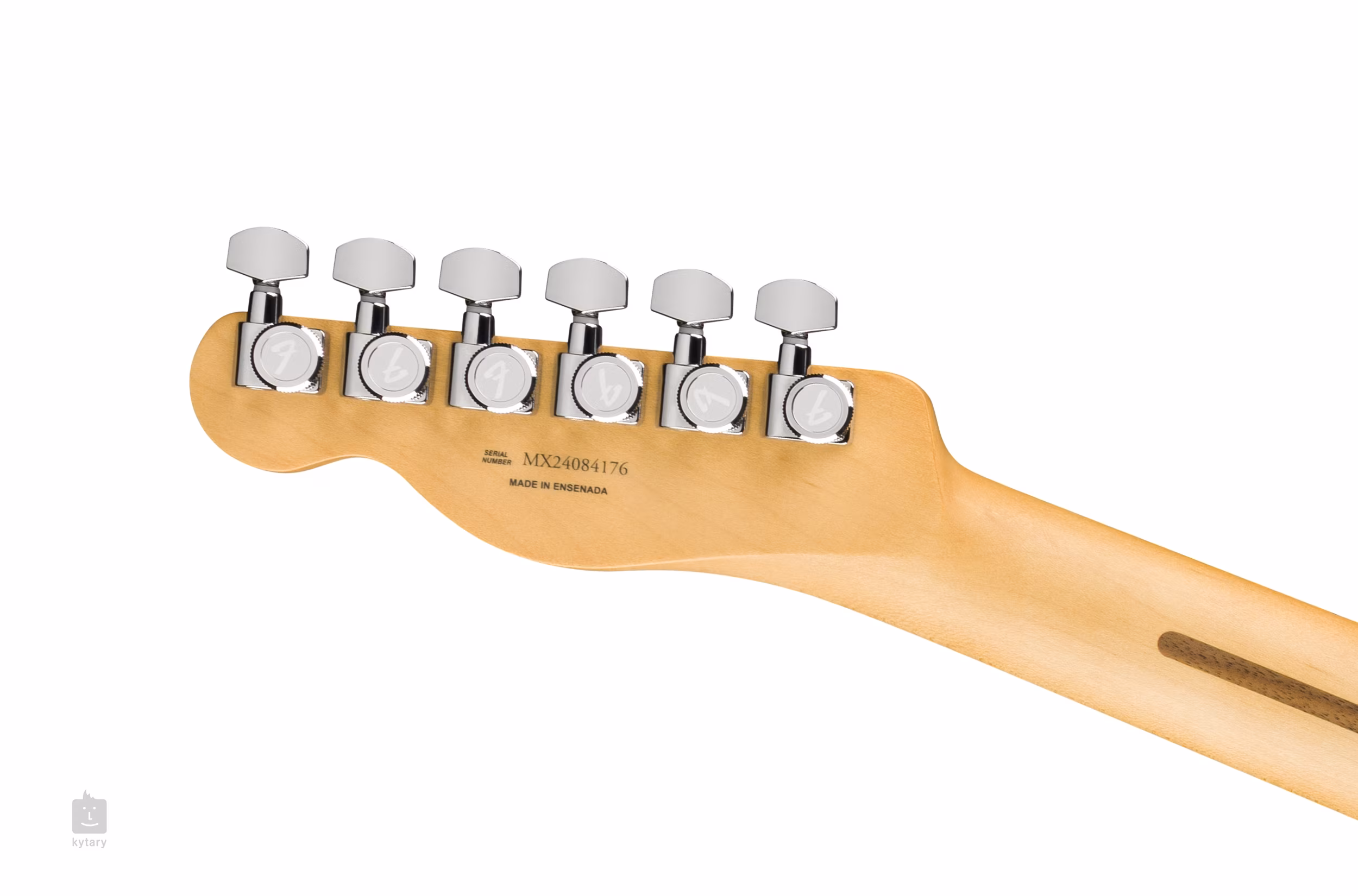 Ein weiteres neues Merkmal der Serie ist die Verwendung von Fender Sealed Locking Mechaniken und einem TusQ-Griffbrett (die Standard-Serie hat ein Faux Bone-Griffbrett). Die Saiten sind standardmäßig in einer durchgehenden Tele-Kopfplatte mit sechs Messingblocksätteln verankert. Der stilvolle Look der Gitarre wird durch ein schwarzes dreilagiges Schlagbrett und eine Sunshine Yellow-Lackierung unterstrichen.