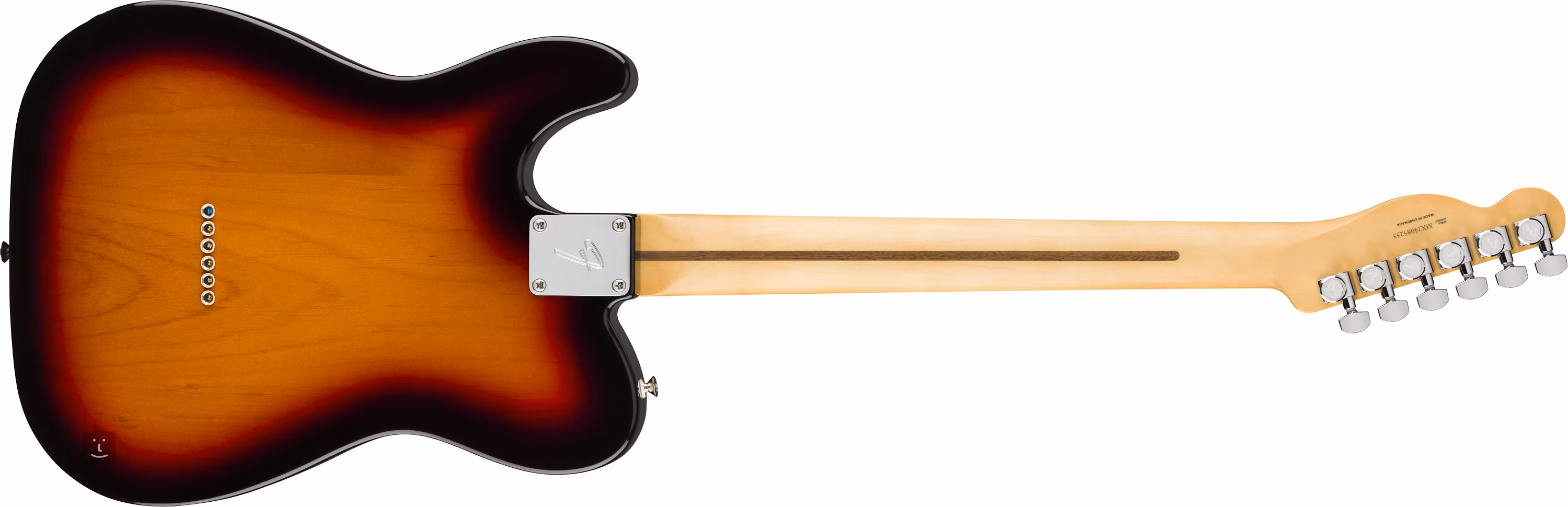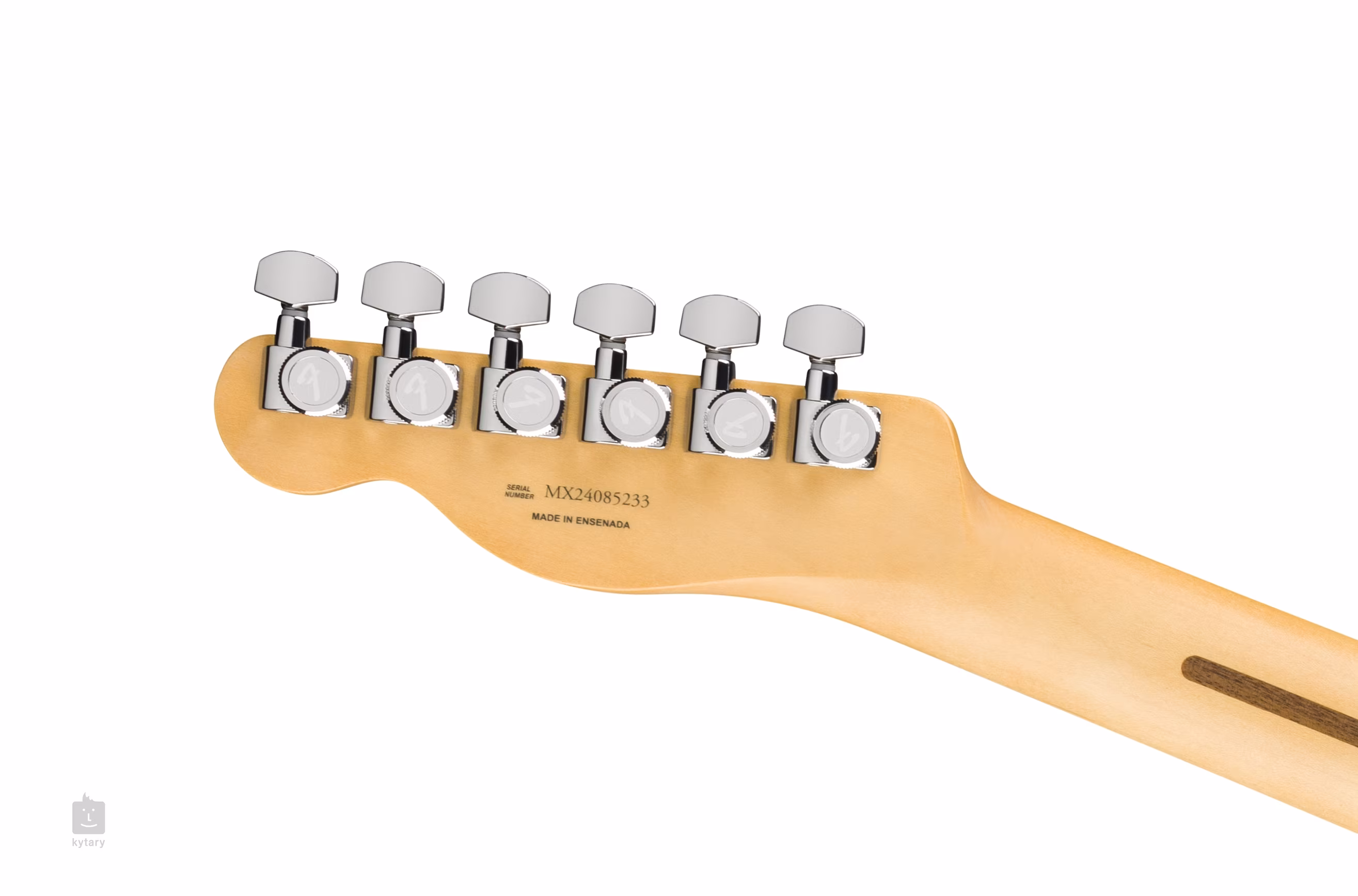Ein weiteres neues Merkmal der Serie ist die Verwendung von Fender Sealed Locking Mechaniken und einem TusQ-Griffbrett (die Standard-Serie hat ein Faux Bone-Griffbrett). Die Saiten sind standardmäßig in einer durchgehenden Tele-Kopfplatte mit sechs Messingblocksätteln verankert. Der stilvolle Look der Gitarre wird durch ein vierlagiges Schlagbrett aus Perlmuttimitat und eine 3-Tone Sunburst-Lackierung unterstrichen.