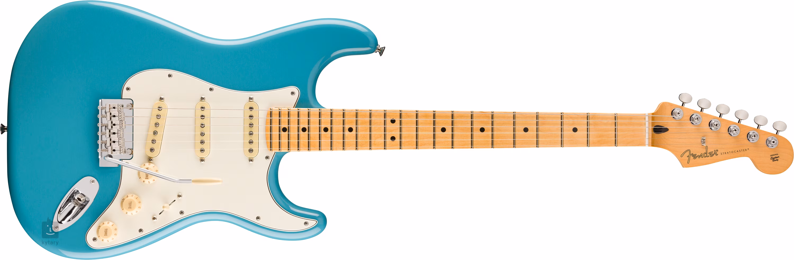 Drei Single-Coil-Tonabnehmer der Player-Serie mit Alnico-5-Magneten verleihen der Gitarre ein moderneres Fender-Gefühl und einen Sound, den Sie in einer Vielzahl von Musikstilen schätzen werden. Der Klangcharakter kann mit den Lautstärke- und Tonreglern und dem fünfstufigen Pickup-Schalter beeinflusst werden. Die Saiten sind in ClassicGear-Mechaniken mit einem Übersetzungsverhältnis von 18:1 und einem synchronisierten "2-Punkt"-Tremolo mit Stahlsätteln montiert. Der stilvolle Look der Gitarre wird durch ein helles 3-lagiges Schlagbrett und die Aquatone Blue-Lackierung unterstrichen.