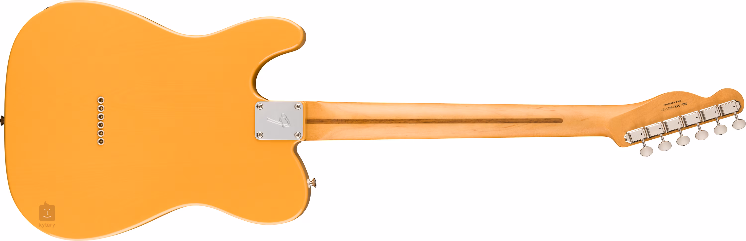 Zwei Single-Coil-Tonabnehmer der Player-Serie mit Alnico-5-Magneten verleihen der Gitarre ein moderneres Fender-Gefühl und einen Sound, den Sie in einer Vielzahl von Musikstilen schätzen werden. Der Klangcharakter lässt sich mit den Lautstärke- und Tonreglern sowie dem dreistufigen Pickup-Schalter beeinflussen. Die stabile Stimmung wird durch die Lagerung der Saiten in ClassicGear-Getrieben mit einem Übersetzungsverhältnis von 18:1 und durch eine solide Brücke mit sechs Stahlsätteln im Korpus gewährleistet. Der stilvolle Look der Gitarre wird durch das schwarze dreilagige Schlagbrett und die glänzende Butterscotch-Blonde-Lackierung unterstrichen.