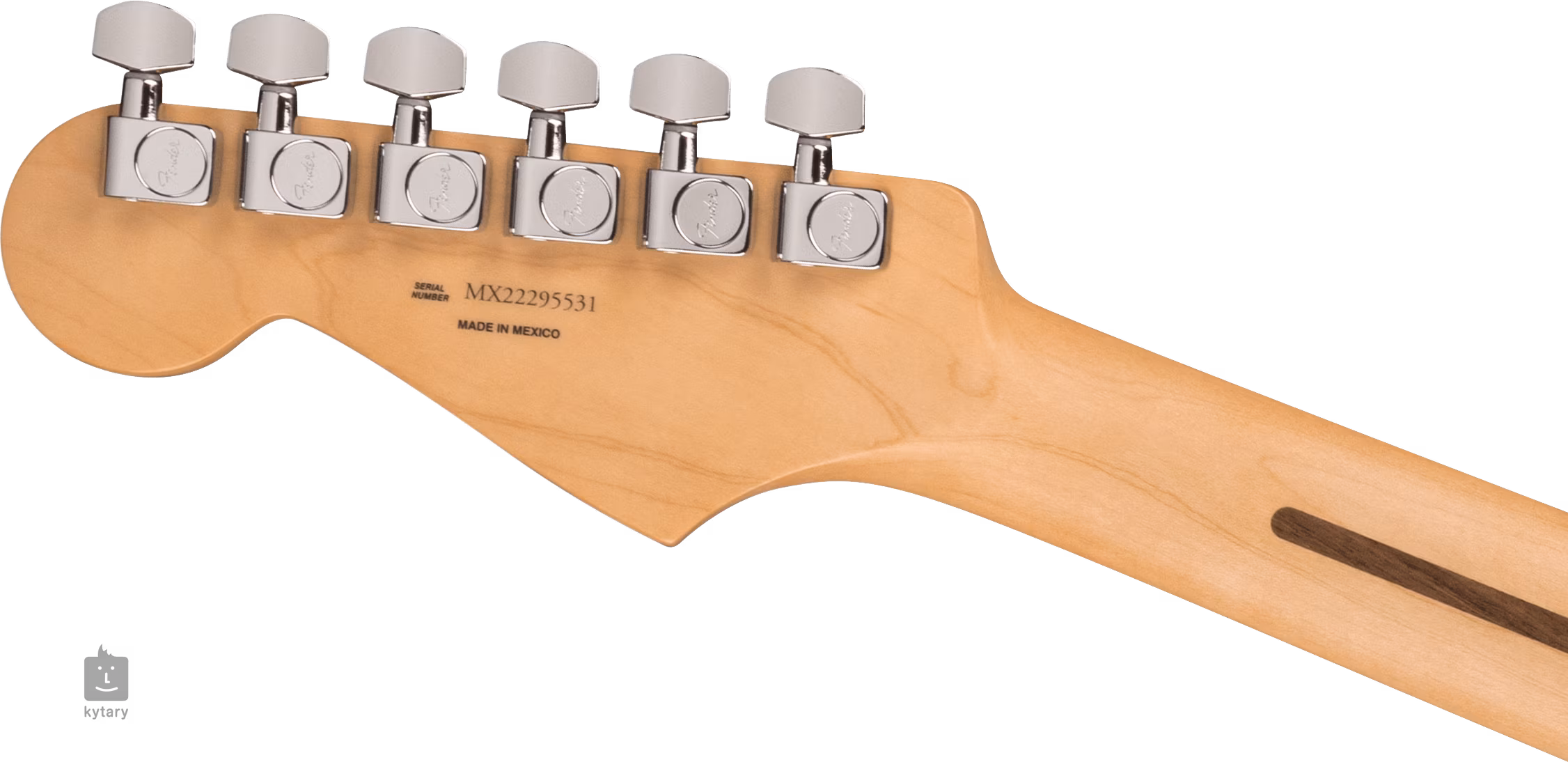 Die Kombination der firmeneigenen Tonabnehmer mit Alnico-Magneten, d. h. ein Cob-Humbucker und zwei Single-Coils, verleiht der Gitarre einen vollmundigen, saftigen Rock- und sauberen, klingenden Strat-Sound, der in einer Vielzahl von Musikgenres hervorstechen wird. Seine Konturen lassen sich mit den Lautstärkepotentiometern, der Tonblende und dem fünfstufigen Pickup-Schalter einstellen. Die Saiten werden in Standard Cast/Sealed-Mechaniken und einem synchronisierten Tremolo mit Zweipunktverankerung gehalten. Der stilvolle Look der Gitarre wird durch ein dreilagiges Schlagbrett und das Fender-Spaghetti-Logo unterstrichen.