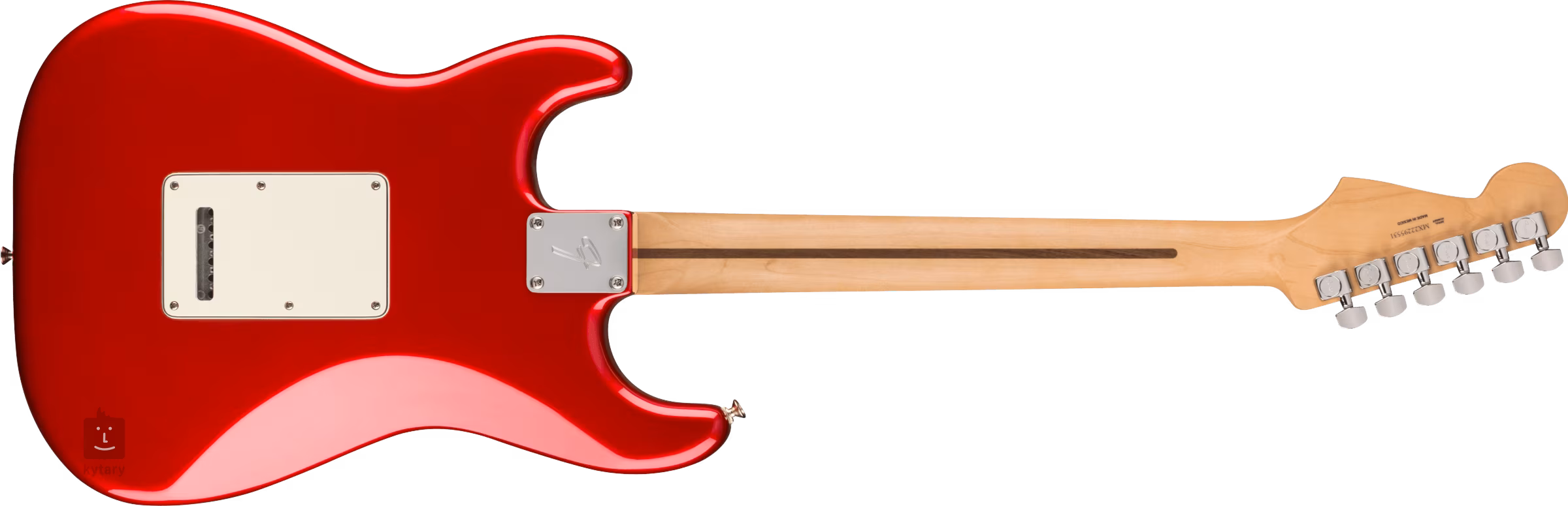 Der Erle-Korpus der PLAYER STRAT HSS PF CAR Stratocaster ist mit einem glänzenden Polyester-Lack überzogen. Ein Ahornhals mit "Modern C"-Profil ist auf ein Pau-Ferro-Griffbrett mit zweiundzwanzig Medium-Jumbo-Bünden geleimt.