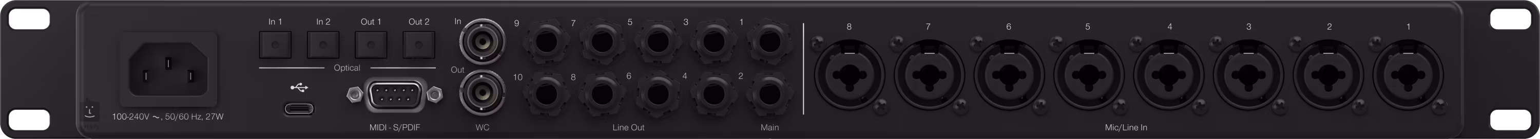 Die 26 × 30 I/O-Konfiguration bietet umfangreiche Anschlussmöglichkeiten und ausreichend Platz für vollwertige Bandaufnahmen sowie erweiterte Produktions-Workflows. Das Interface ist mit einer digitalen Erweiterung in Form von 16 ADAT-Kanälen, S/PDIF-I/O und Unterstützung für den ADAT-Preamp-Standalone-Modus ausgestattet, was eine einfache Erweiterung des Studios oder die Nutzung des Geräts als eigenständigen Vorverstärker ermöglicht. Auch MIDI-I/O und DC-gekoppelte Line-Ausgänge, die für die Steuerung modularer Synthesizer geeignet sind, fehlen nicht.