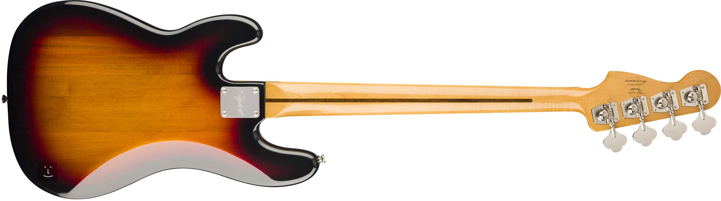 Die Saiten sind mit vier Stahlsteinen in der Kopfplatte verankert. Auf der anderen Seite des Instruments befinden sich Vintage Style Stimmmechaniken, die für maximale Stimmstabilität sorgen. Die Hardware ist aus Nickel und auf dem Korpus befindet sich ein vierlagiges Schlagbrett. Der Nullbund ist aus echtem Knochen gefertigt. Der Bass ist mit Fender NPS-Saiten der Stärke .045 - .105 bespannt.