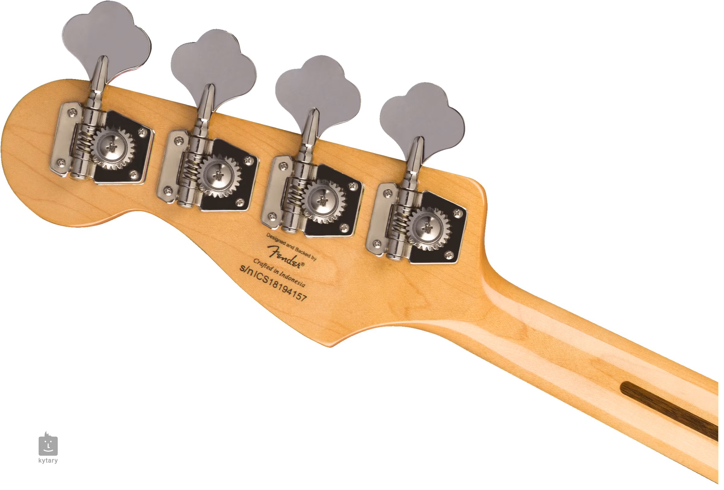 Die gesamte Hardware ist aus Nickel für einen Vintage-Effekt, einschließlich der Stimmmechaniken. Das Instrument ist ab Werk mit Fender NPS-Saiten (.045 - .105) bespannt.