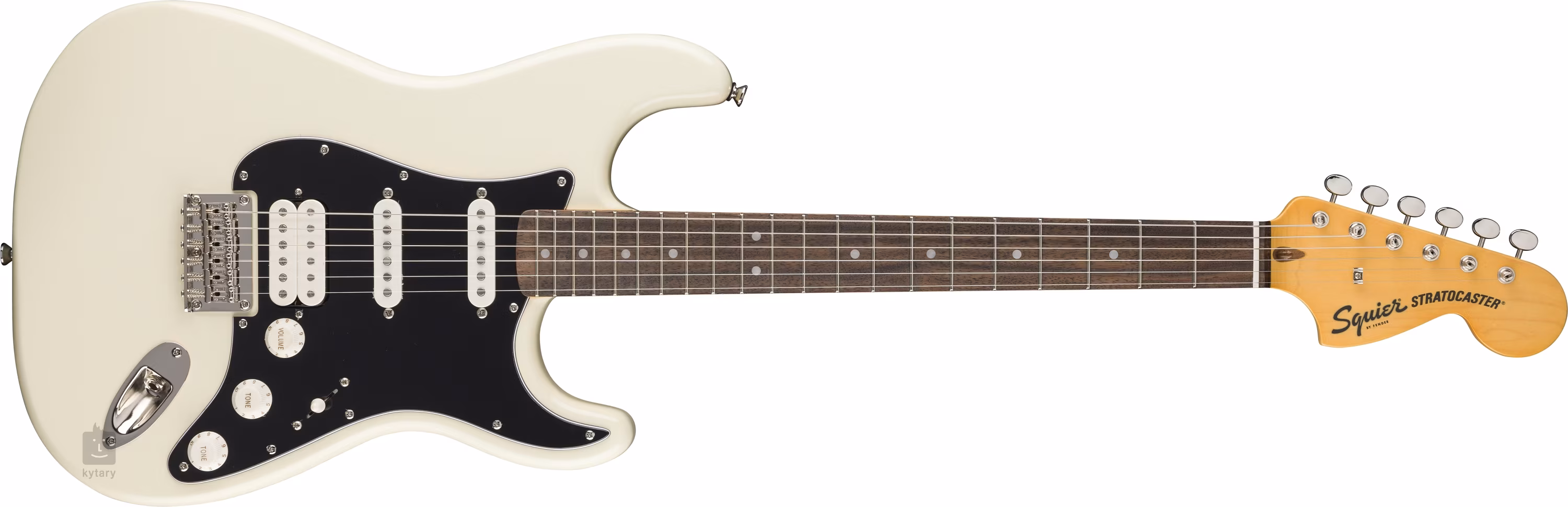 Die Classic Vibe 70s Stratocaster HT HSS LRL Olympic White ist eine E-Gitarre, die von den Fender Stratocaster-Modellen der 1970er Jahre inspiriert ist. Der Korpus aus Pappelholz ist mit einer Polyurethan-Lackierung in Olympic White veredelt. Der geschraubte Ahornhals mit einem schmaleren C-Profil ist auf ein Feigengriffbrett mit einundzwanzig Narrow Tall-Bünden geklebt. Die Orientierung auf dem Griffbrett wird durch Positionspunkte aus Perlmuttimitat erleichtert.