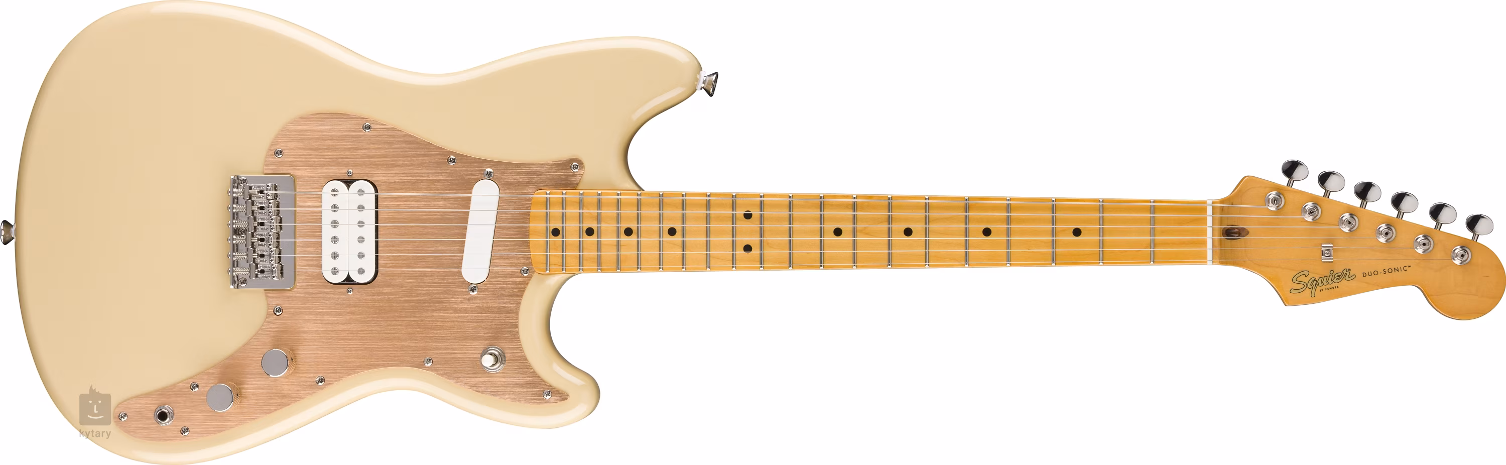 Die Classic Vibe Duo-Sonic HS MN Desert Sand ist eine günstige E-Gitarre von Fender Squier. Sie verfügt über einen Korpus aus Pappelholz, einen geschraubten Ahornhals mit komfortablem "C"-Profil und ein Ahorn-Griffbrett mit einundzwanzig Narrow Tall-Bünden.