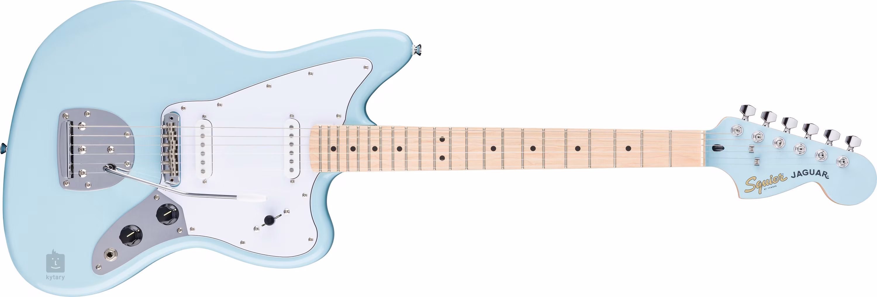 Zwei Squier Single-Coil-Tonabnehmer mit Keramikmagneten sorgen für den Sound des Instruments. Mit den Reglern für Lautstärke und Ton sowie dem dreistufigen Pickup-Schalter lässt sich der Klangcharakter einstellen. Die Saiten sind in der verchromten Druckgussmechanik und dem Vintage-Tremolo des Herstellers gelagert. Das stilvolle Finish wird durch das Daphne Blue Farbschema und das dreilagige weiße Schlagbrett akzentuiert.