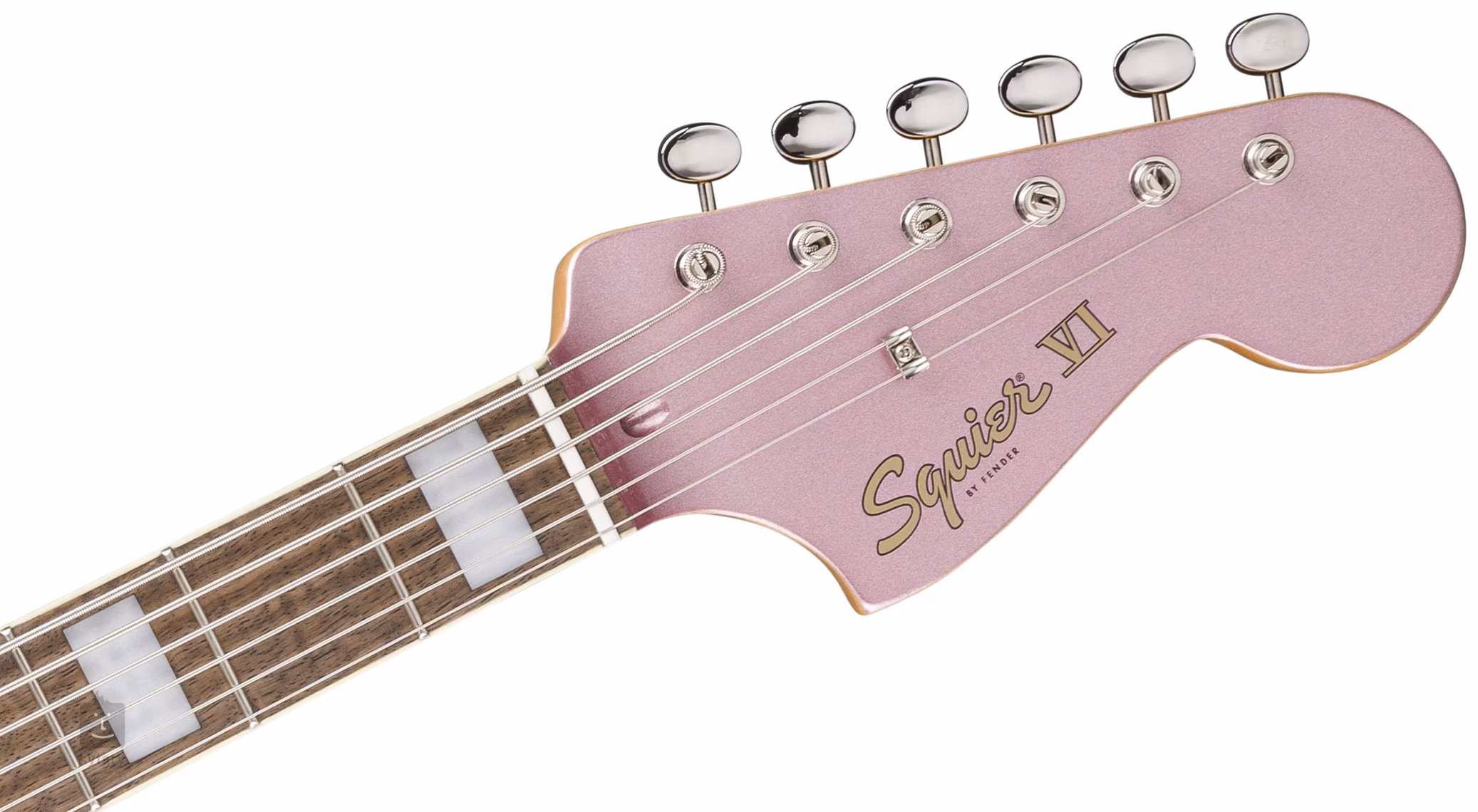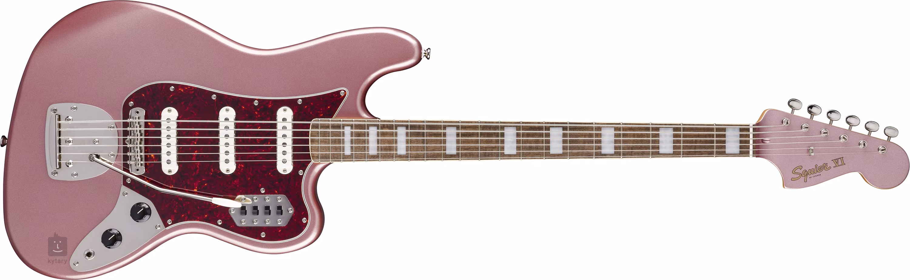 Das Soundsystem des Basses wird von drei Single-Coil-Tonabnehmern des Unternehmens mit Alnico-Magneten übernommen. Die Potentiometer fungieren als Master Volume und Tone, die Tonabnehmer werden mit Schaltern aktiviert und ein vierter Schalter schaltet die Bass-Cut-Schaltung ein. Die Saiten werden über ein Griffbrett aus Knochen und einen schwebenden Vintage-Tremolo-Saitenhalter mit sechs Sätteln in den hauseigenen Stimmmechaniken gehalten. Das stilvolle Finish wird durch ein vierlagiges Schlagbrett aus Schildpatt-Imitat und Nickel-Hardware akzentuiert.