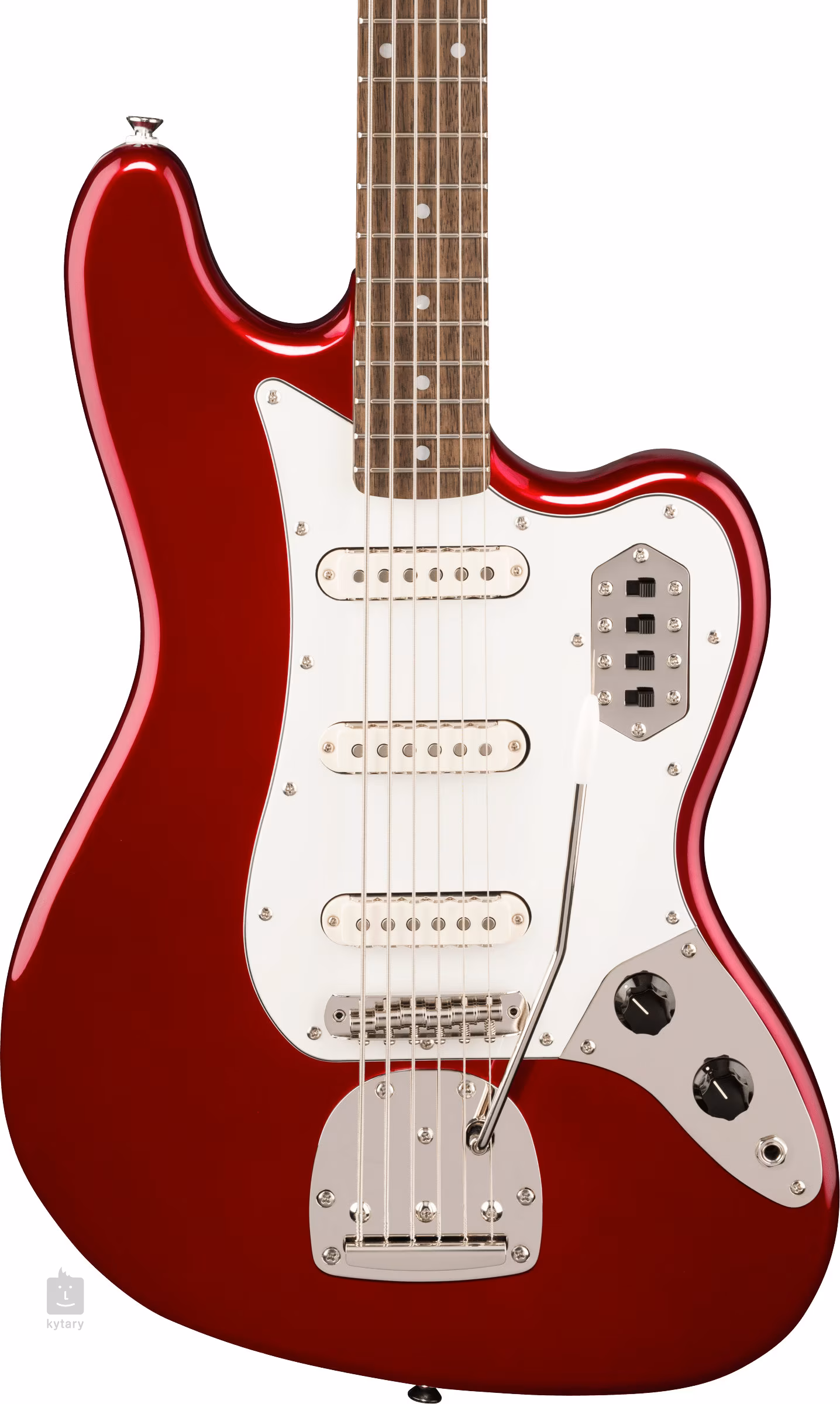 Drei Fender Designed Alnico Single-Coil-Tonabnehmer verleihen der Bassgitarre einen tiefen, satten, artikulierten Klang mit Fender-DNA. Die Potentiometer fungieren als Master Volume und Tone, die Tonabnehmer werden über Schalter aktiviert, der vierte Schalter aktiviert den Bass-Cut-Schaltkreis. Die Saiten sind in firmeneigenen Stimmmechaniken im Vintage-Stil und über einen Steg mit sechs Saitenreitern in einem Floating-Tremolo befestigt. Die stilvolle Verarbeitung wird durch ein dreilagiges Pergament-Pickguard und Nickel-Hardware unterstrichen.