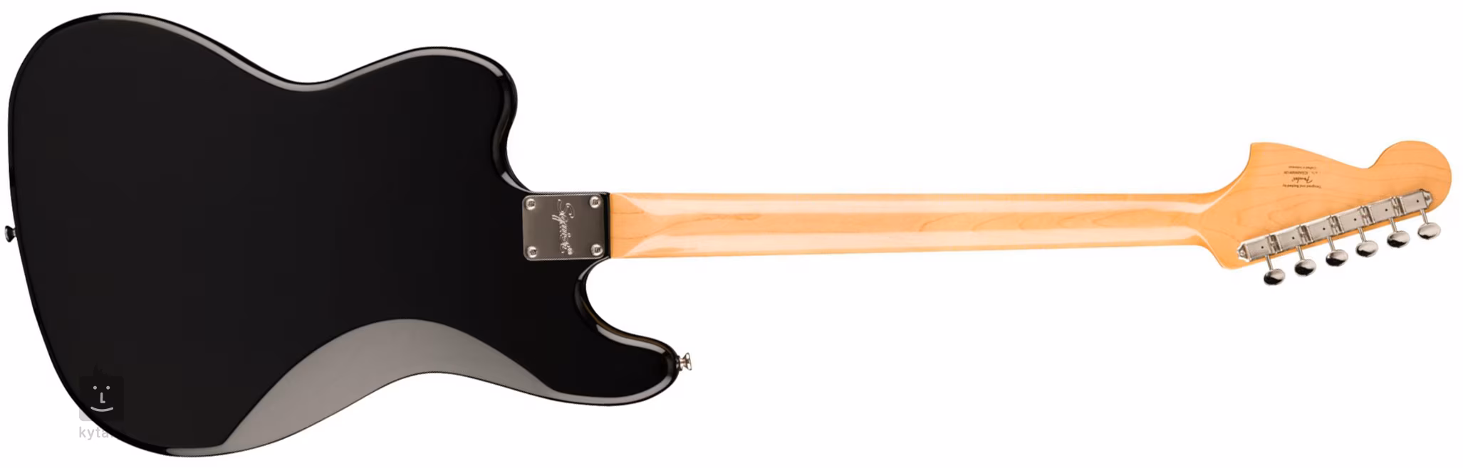 Der Korpus des Fender Squier FSR Classic Vibe Bass VI Black in limitierter Auflage ist aus Pappelholz gefertigt. Der schmalere Hals mit einem komfortablen C-Profil und das Griffbrett sind aus Ahorn. Die Oberfläche des Griffbretts ist durch einundzwanzig Narrow Tall-Bünde und schwarze Positionsblöcke unterteilt.
