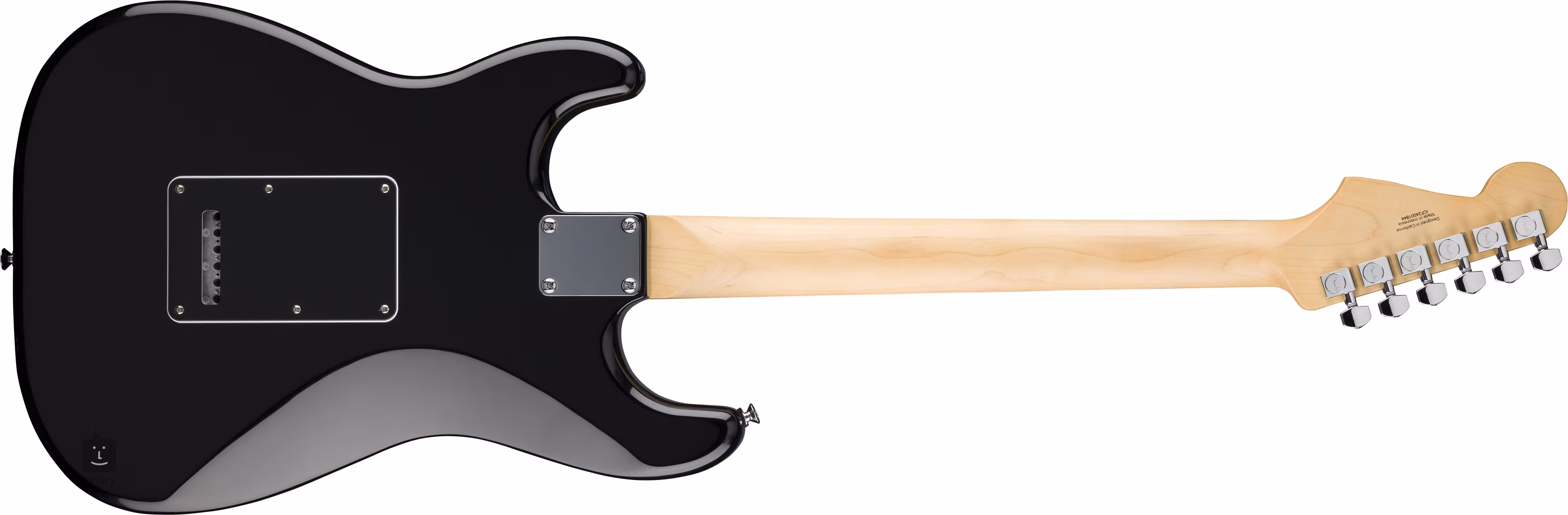 Der Korpus der Standard Stratocaster HSS LRL BLK E-Gitarre ist aus Pappelholz gefertigt. Ein Ahornhals mit einem angenehmen "Modern C"-Profil ist auf ein Feigengriffbrett mit einundzwanzig Medium-Jumbo-Bünden geleimt. Weiße Positionspunkte auf dem Griffbrett erleichtern die Orientierung.