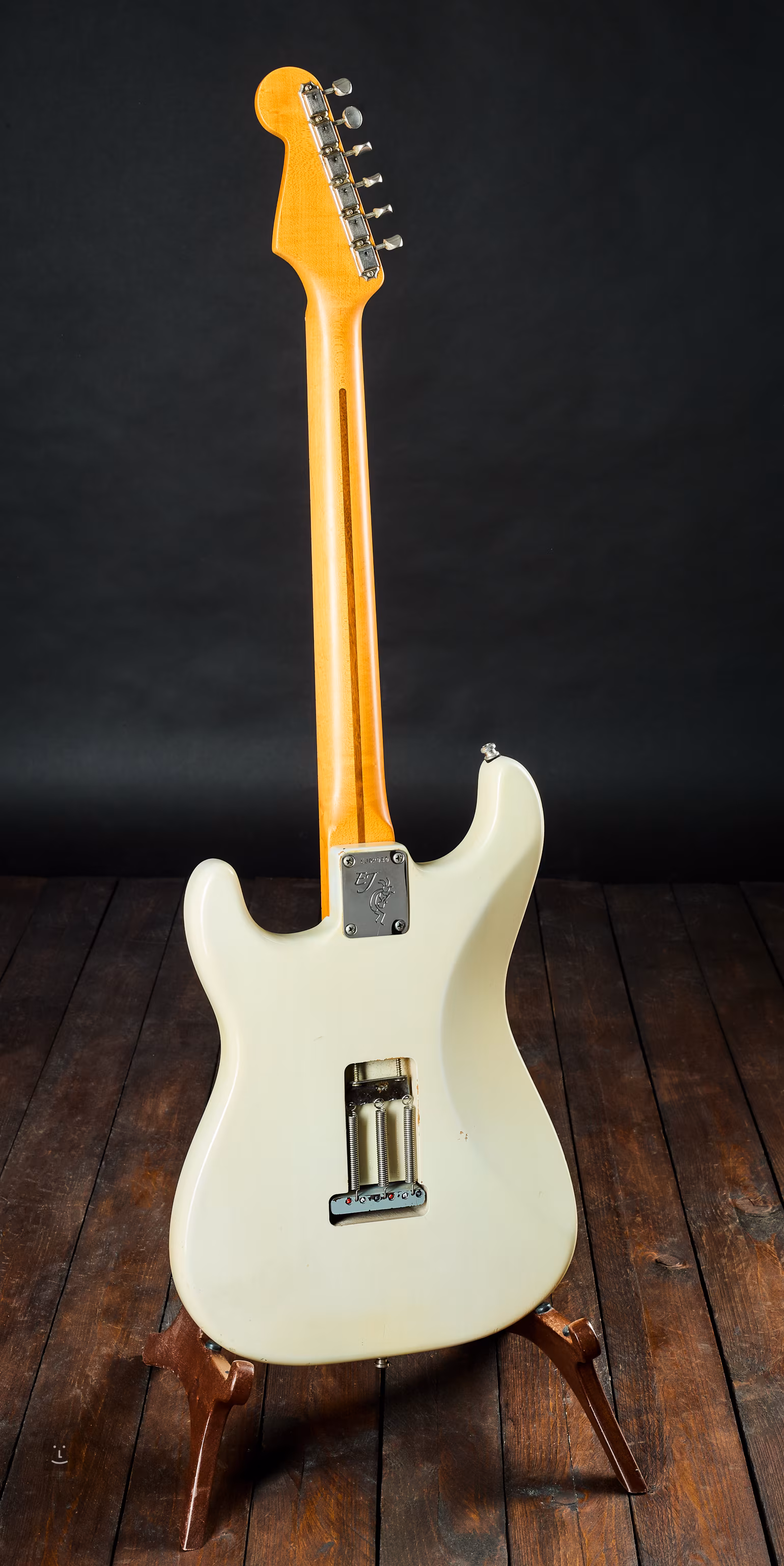 Der Korpus ist aus Erle; der Hals aus einem Stück Ahorn mit Quartersawn-Schnitt und Soft-V-Profil; das Griffbrett hat einen Radius von 12". Die Rückseite des Korpus ist werkseitig ohne Tremoloabdeckung gestaltet. Die Stimmmechaniken sind kompensiert (Staggered Vintage Style Tuners), sodass keine Saitenhalter erforderlich sind; an dem Instrument war früher ein Saitenhalter angebracht, der jedoch inzwischen entfernt wurde.