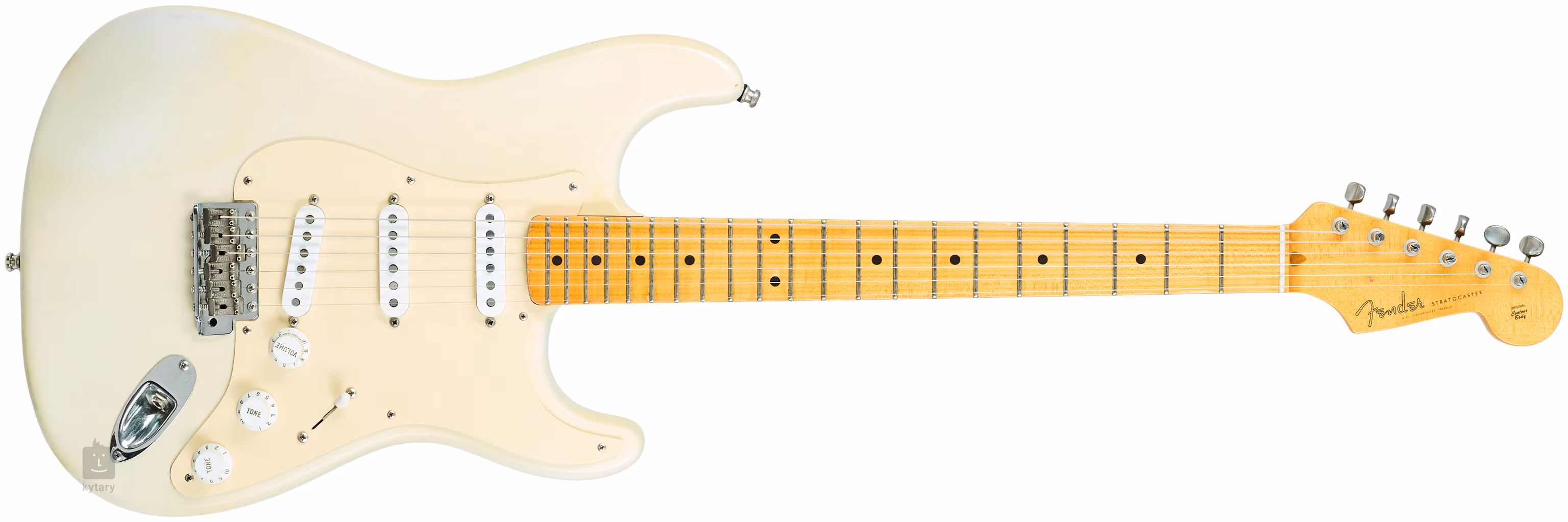Das Instrument wird als Gebrauchtware im BAZAR-Modus (ohne Mehrwertsteuer) verkauft, inklusive Originalkoffer, Truss Rod, verbleibenden Federn und verchromter Stegabdeckung.