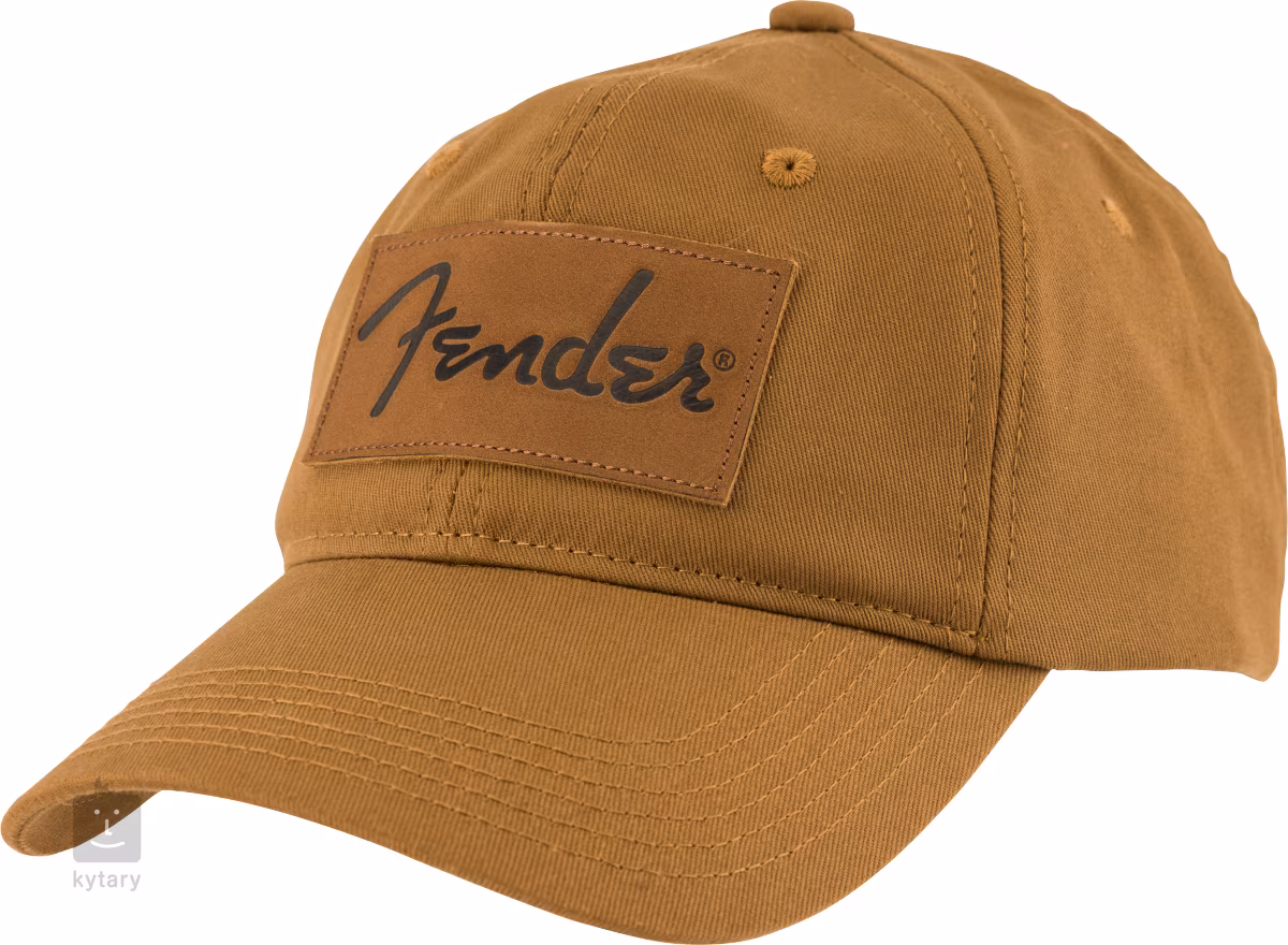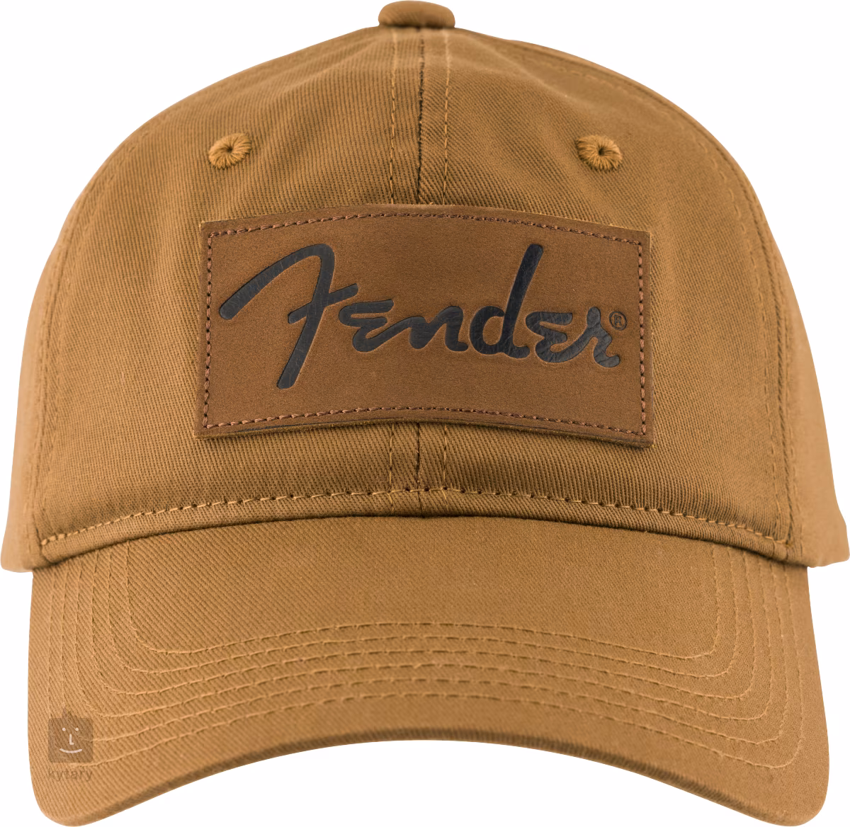 Die Baumwollkappe Vintage Badge Hat Caramel mit einem Aufnäher aus echtem Leder und geprägtem Fender-Logo wird schnell zu Ihrem Lieblingsaccessoire für jeden Tag werden.