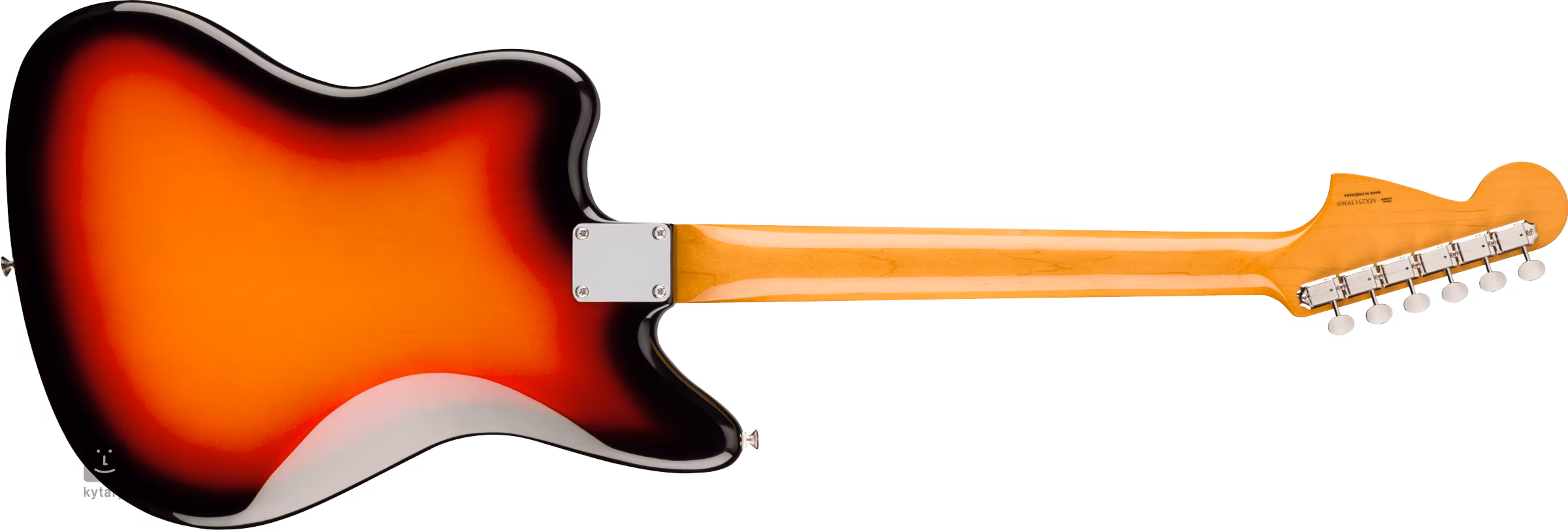 Der asymmetrisch geformte Korpus aus Erle der E-Gitarren Jaguar ist mit glänzendem Polyesterlack überzogen. Der Ahornhals und das Palisandergriffbrett basieren auf den Spezifikationen der Instrumente aus den 60er Jahren, d. h. sie bieten ein authentisches Mid '60s „C”-Halsprofil, einen 7,25-Zoll-Griffbrettradius und Vintage Tall-Bünde – keine Abweichungen von der Gegenwart. Die Orientierung auf dem Griffbrett wird durch Positionspunkte aus Perlmuttimitat erleichtert. Dank der kürzeren Mensur (610 mm) eignet sich die Jaguar auch für Menschen mit kleineren Fingern.