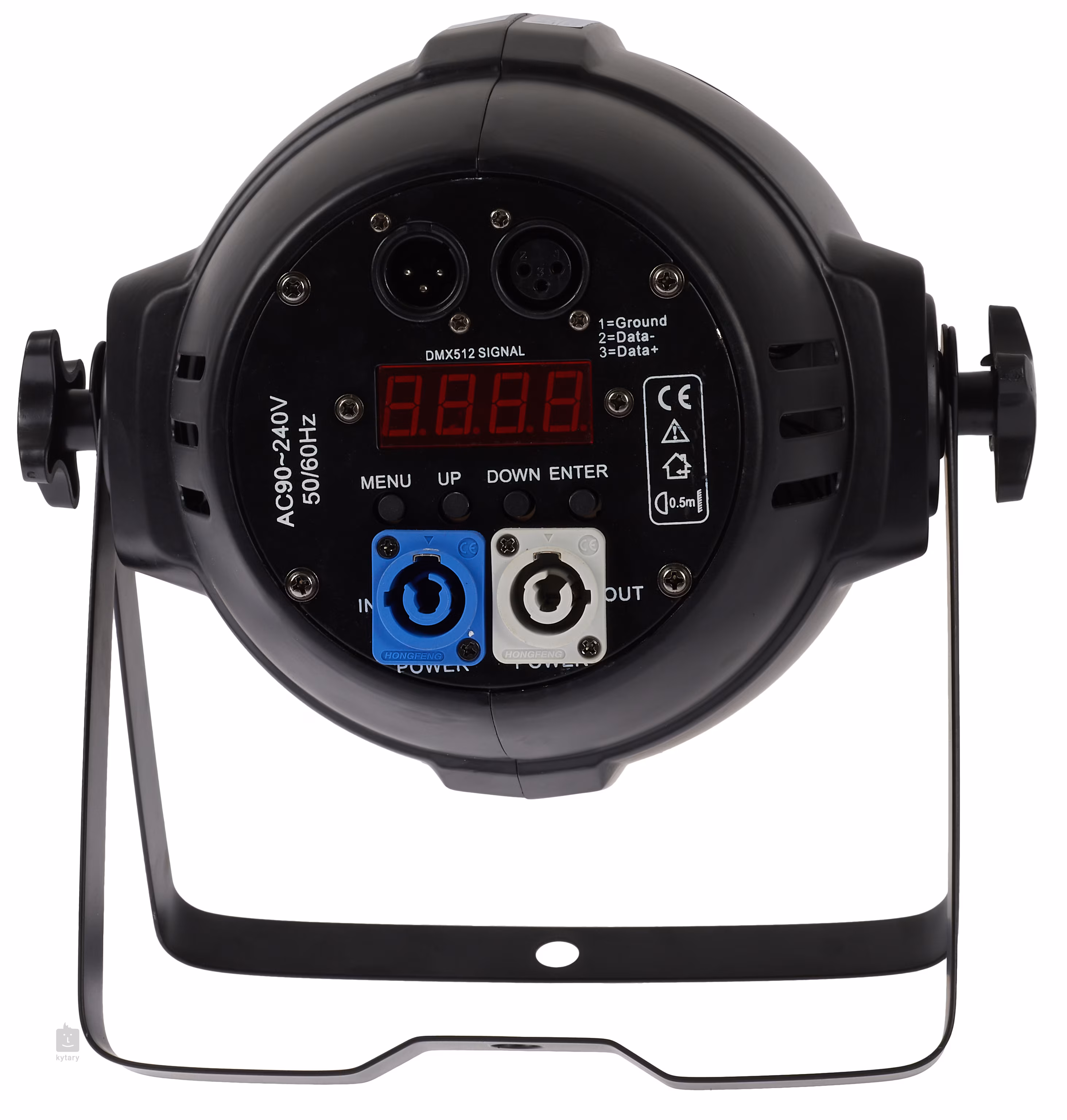 Die gesamte Steuerung erfolgt über das Standard-DMX-512-Protokoll, mit soundgesteuerten oder automatischen Programmen oder im Master/Slave-Modus. Für manuelle Einstellungen steht ein übersichtliches Bedienfeld mit Display und Tasten zur Verfügung. Das Gerät ist mit dreipoligen DMX-Anschlüssen und PowerCon-Stromanschlüssen ausgestattet. Die Basis-Schutzart IP20 ist für den Außeneinsatz nicht ausreichend, so dass der Scheinwerfer nur für den Innenbereich geeignet ist. Im Lieferumfang sind Montagebügel enthalten, die zur Befestigung an einer Bühnenstruktur oder als Ständer beim Aufstellen auf dem Boden verwendet werden können.