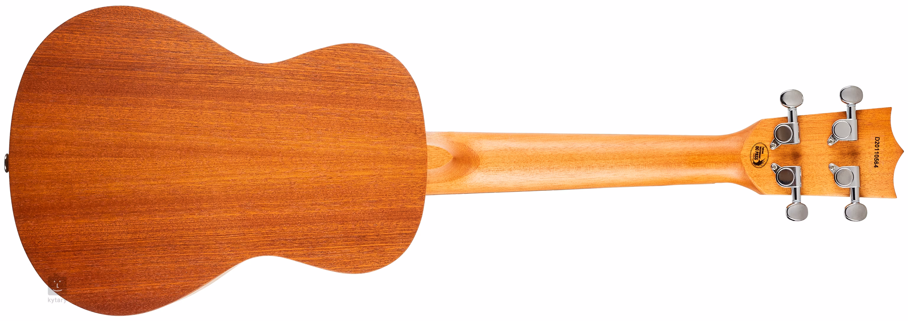 Der Korpus dieser Konzert-Ukulele ist aus laminiertem Mahagoni gefertigt. Die natürliche Resonanz der Ukulele wird durch die leicht gewölbte Bodenplatte verstärkt. Hals und Griffbrett des Instruments sind aus afrikanischem Okoumé und Nussbaum gefertigt, ebenfalls eine recht häufig verwendete Holzkombination. Die Saiten sind über ein Griffbrett aus Knochen und einen Sattelbund in Geared-Mechaniken und einem Griffbrett aus Walnuss verankert.