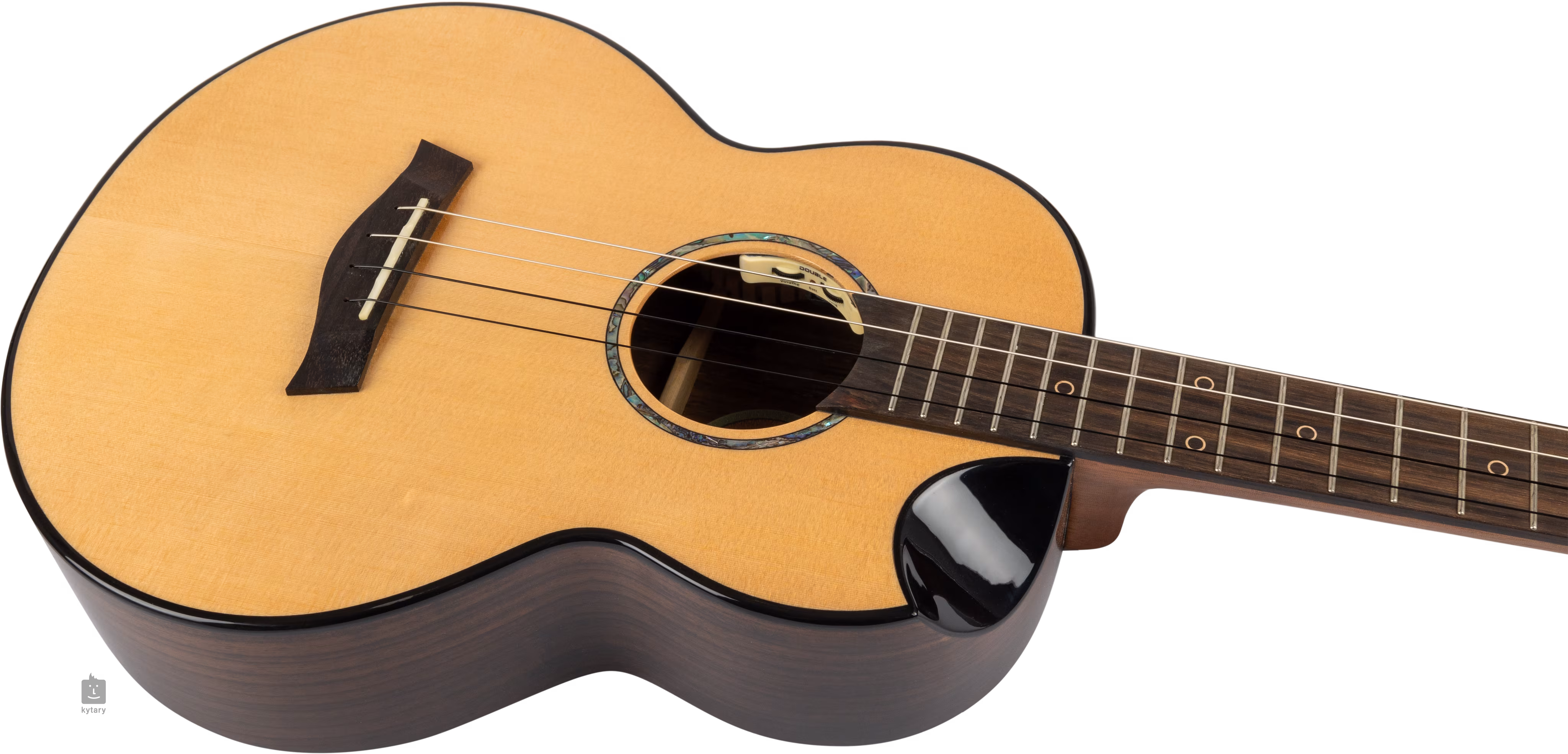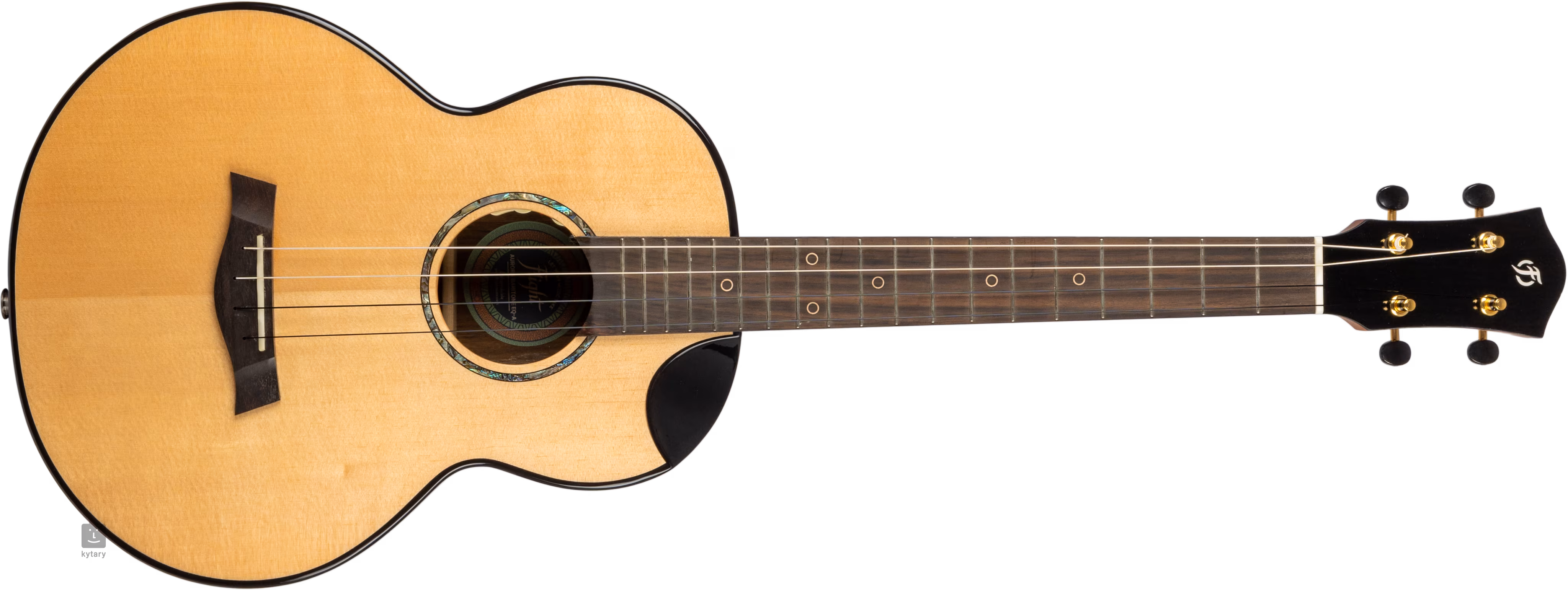 Stimmstabilität und gutes Sustain werden durch die Befestigung der Saiten über den Nullbund und den kompensierten Knochensattel in den offenen Stimmmechaniken des Gitarrentyps und in der so genannten String-Through-Bridge gewährleistet, einem aus dem Gitarrenbau übernommenen Konzept, bei dem die Saiten durch die Frontplatte der Ukulele durch den Steg geführt werden. Die elegante untere Korpusaussparung und die Perlmuttrosette (Abalone) unterstreichen die schöne Verarbeitung.