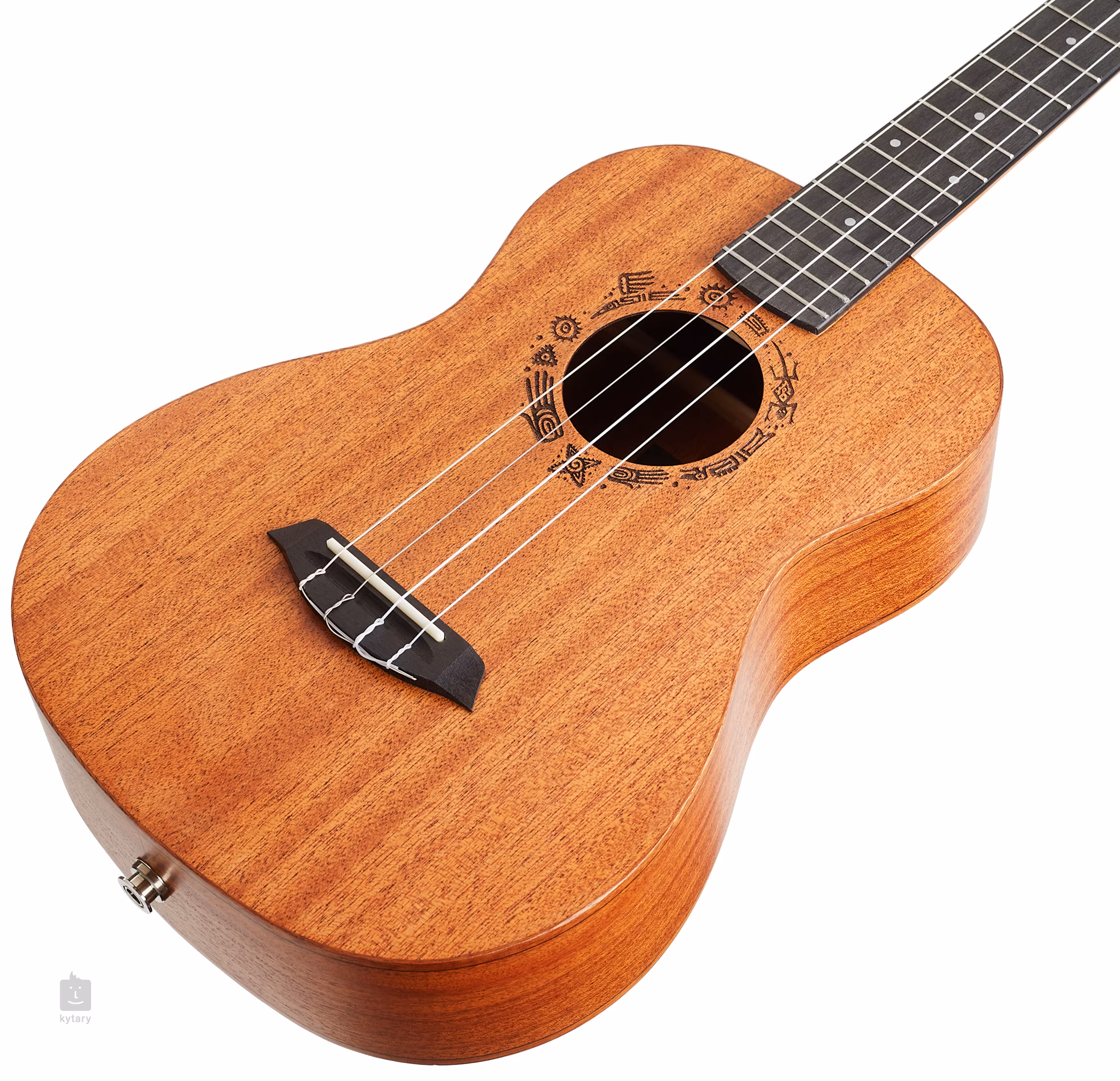 Der Korpus dieser elektroakustischen Bariton-Ukulele ist komplett aus laminiertem afrikanischem Mahagoni gefertigt. Der Hals und das Griffbrett des Instruments sind aus afrikanischem Okoumé und Verbundholz gefertigt, was heutzutage eine sehr beliebte Wahl ist. Die Saiten sind über Null- und Sattelbünde aus Kunststoff in gitarrenartigen Mechaniken und einem Griffbrett aus Verbundwerkstoff verankert.