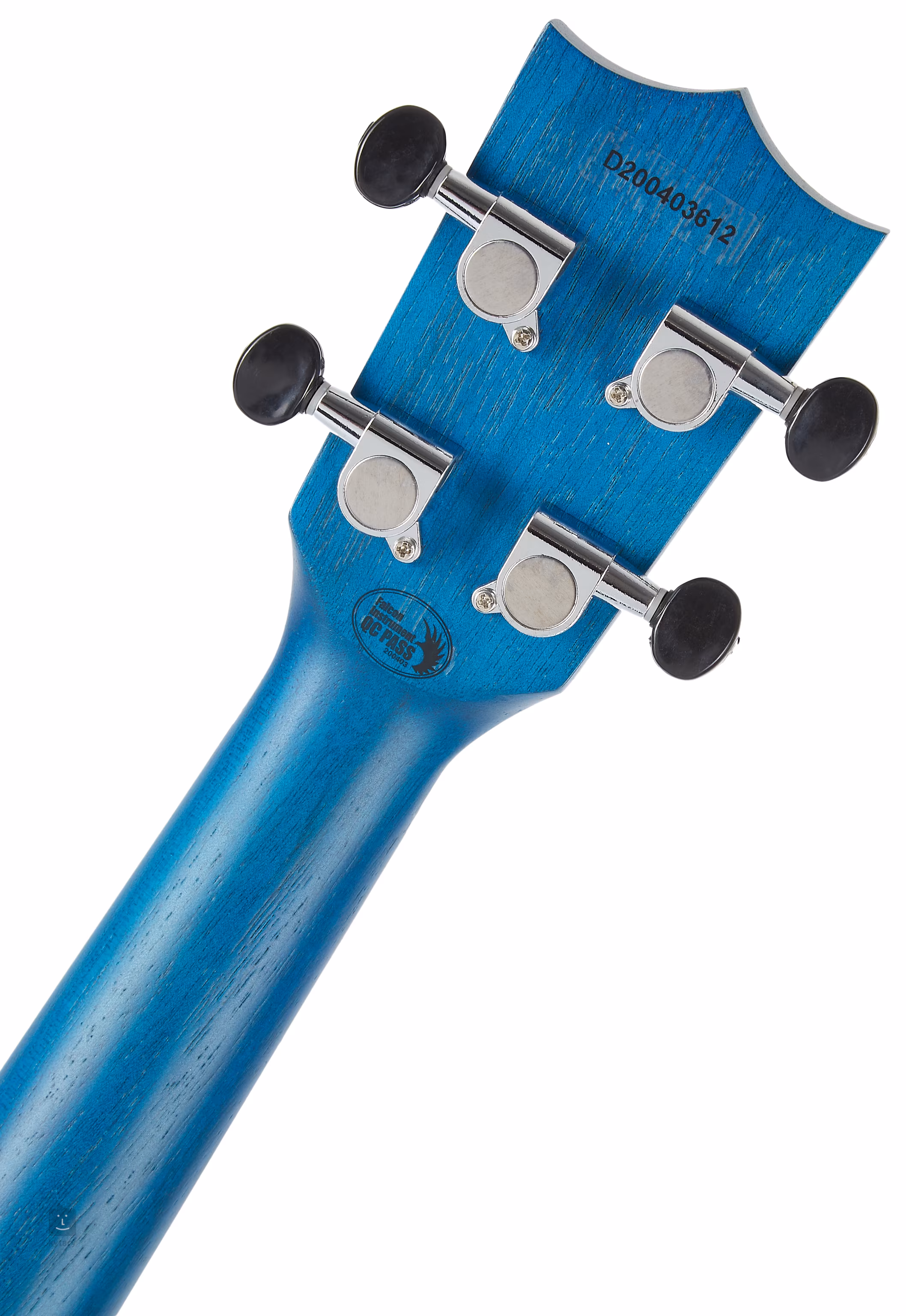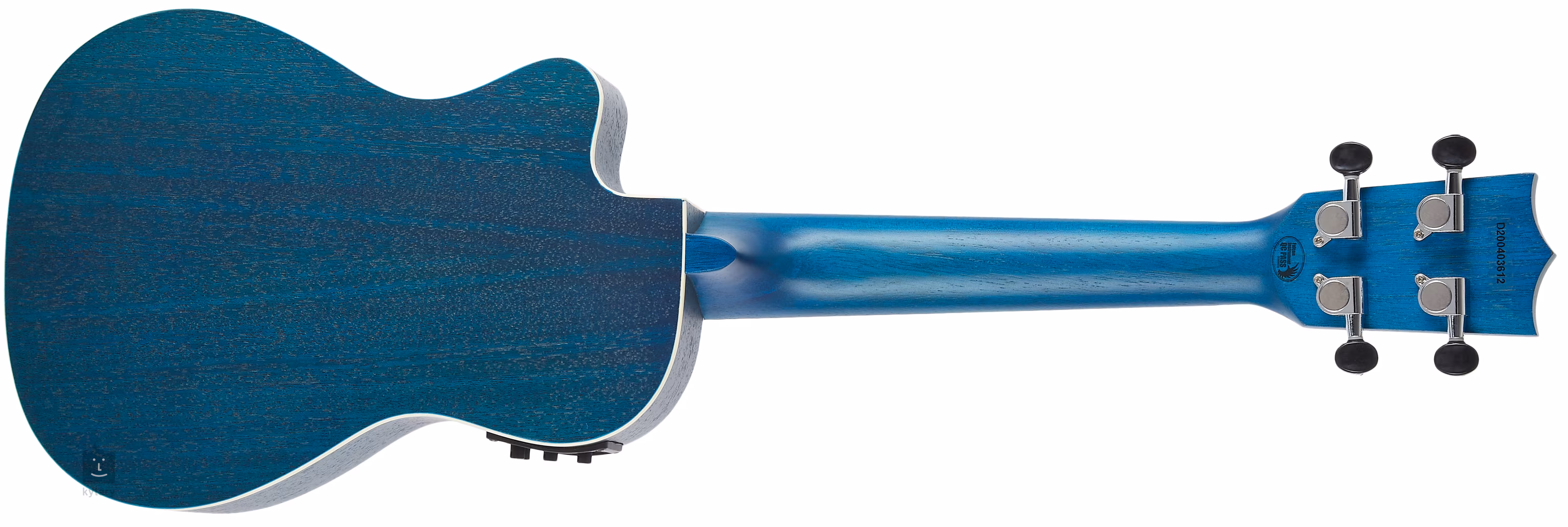 Der Korpus dieser elektroakustischen Konzert-Ukulele ist aus laminiertem Mahagoni gefertigt. Die natürliche Resonanz des Instruments wird durch die leicht gewölbte Bodenplatte der Ukulele verstärkt. Hals und Griffbrett des Instruments sind aus afrikanischem Okoumé und Nussbaum gefertigt, einer ebenfalls recht häufig verwendeten Holzkombination. Die Saiten sind über ein Griffbrett aus Knochen und einen Sattelbund in einem Die-Cast Geared Tuning Mechanismus und einem Griffbrett aus Walnuss verankert.