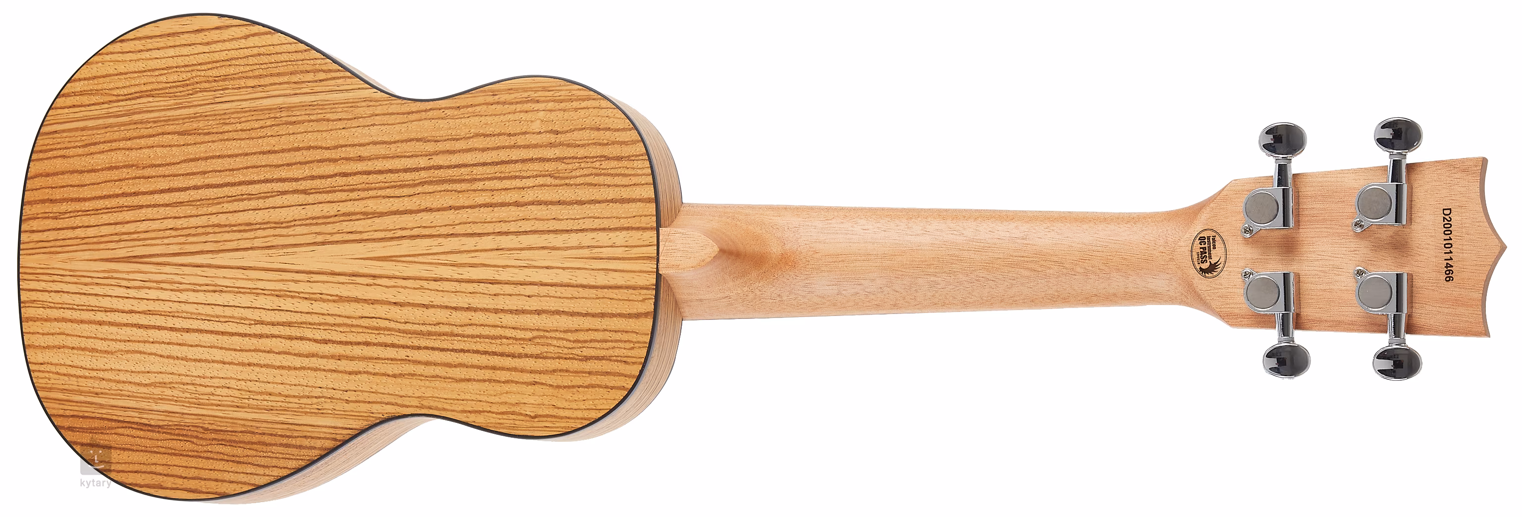 Der Korpus dieser Sopran-Ukulele besteht aus einer laminierten Fichtendecke und einem laminierten Boden und Zargen aus exotischem Zebrano, dessen Maserung einen schönen Kontrast zur Fichtendecke bildet. Der Hals und das Griffbrett des Instruments sind aus afrikanischem Okoumé und Nussbaum, einer ebenfalls recht häufig verwendeten Holzkombination. Die Saiten sind über ein Griffbrett aus Knochen und einen Sattelbund in verchromten Druckguss-Mechaniken und einem Griffbrett aus Nussbaum verankert. Das sparsame Design wird bei den Modellen der Designer Series durch eine Rosette in Form einer dekorativen Lasergravur aufgewertet.