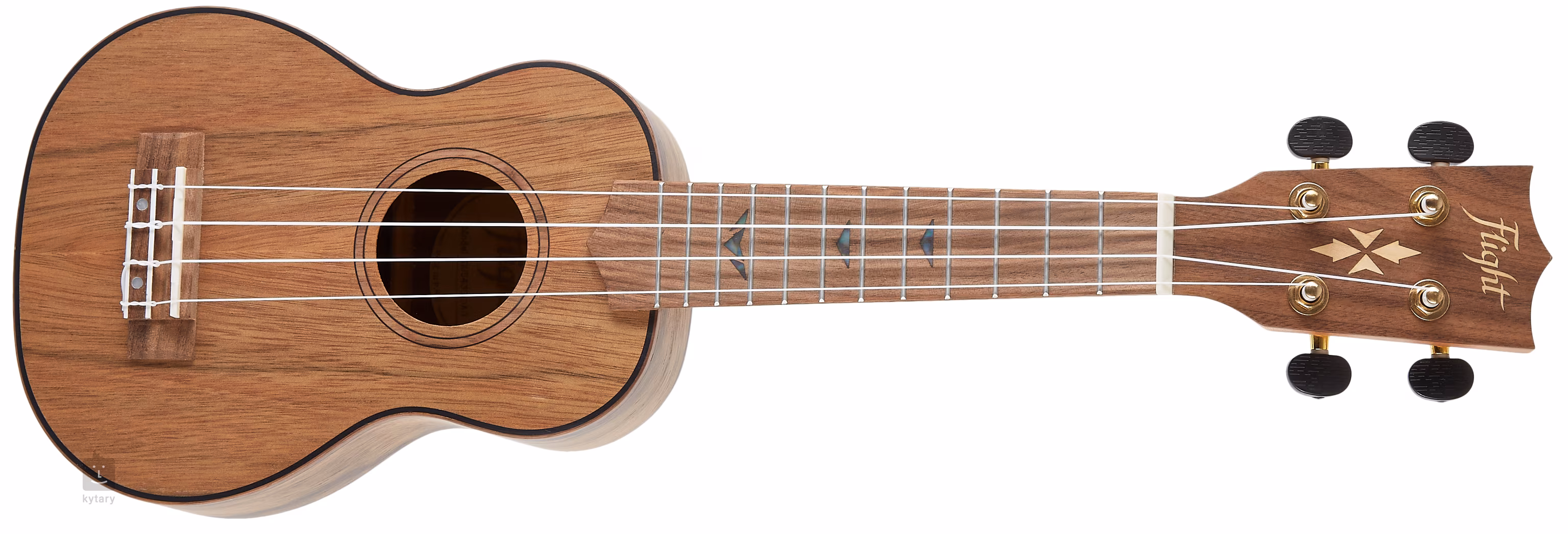 Der Korpus dieser Sopran-Ukulele ist aus laminiertem Dao/Paldao gefertigt, einem aus Südostasien stammenden Holz mit beeindruckender Maserung. Die natürliche Resonanz der Ukulele wird durch die sanft gewölbte Bodenplatte noch verstärkt. Hals und Griffbrett des Instruments bestehen aus afrikanischem Okoumé und Nussbaum, einer ebenfalls recht häufig verwendeten Holzkombination. Die Saiten sind über ein Griffbrett aus Knochen und einen Sattelbund in einem Die-Cast Geared Tuning Mechanismus und einem Griffbrett aus Walnuss verankert. Das Erscheinungsbild der Ukulele wird durch die bereits erwähnten dekorativen Einlagen auf dem Griffbrett und der Kopfplatte sowie eine Rosette mit einem markanten Walnussring aufgewertet.